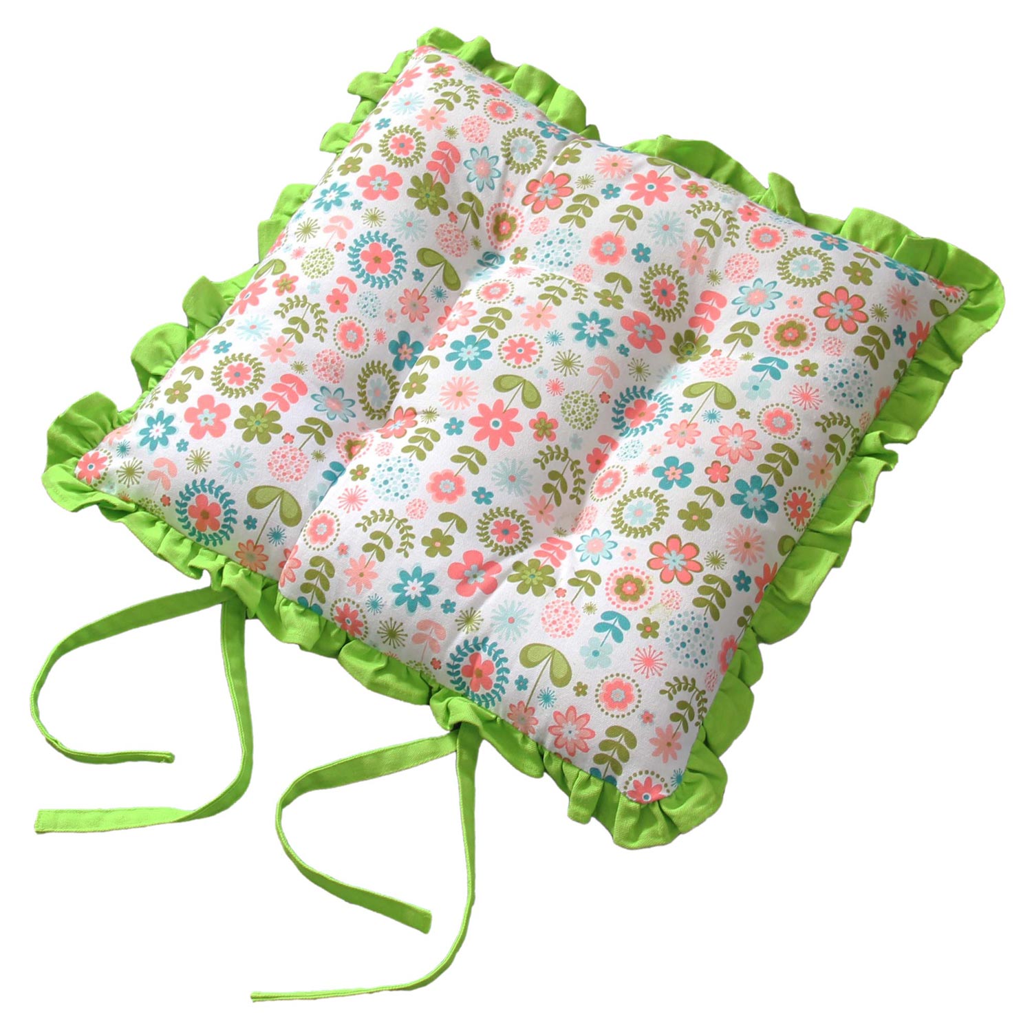 Galette de chaise 40x40 cm à volants Fleurs et Rayures, Coussin de chaise réversible en coton - Homescape