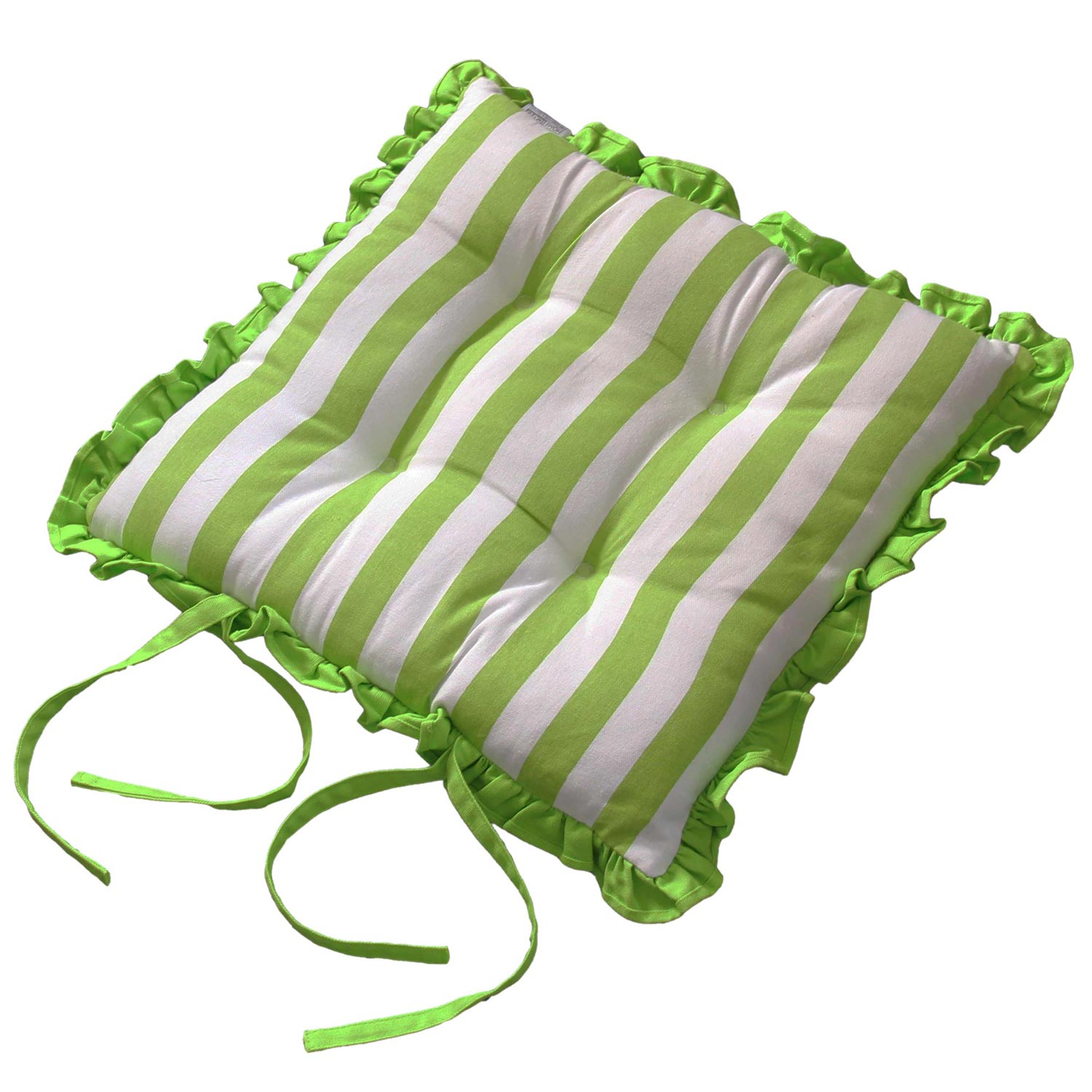 | Libellé | Galette de chaise 40x40 cm à volants Fleurs et Rayures, Coussin de chaise réversible en coton - Homescapes |