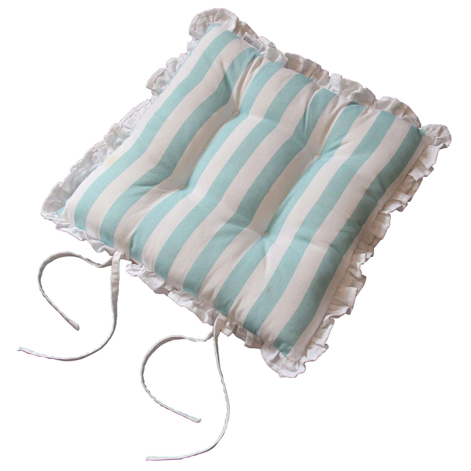 Galette de chaise 40x40 cm à volants Rayures et Etoiles, Coussin de chaise réversible en coton - Homescap