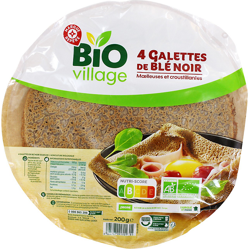 4 GALETTES DE BLE NOIR ISSUES DE L'AGRICULTURE BIOLOGIQUE BIO VILLAGE