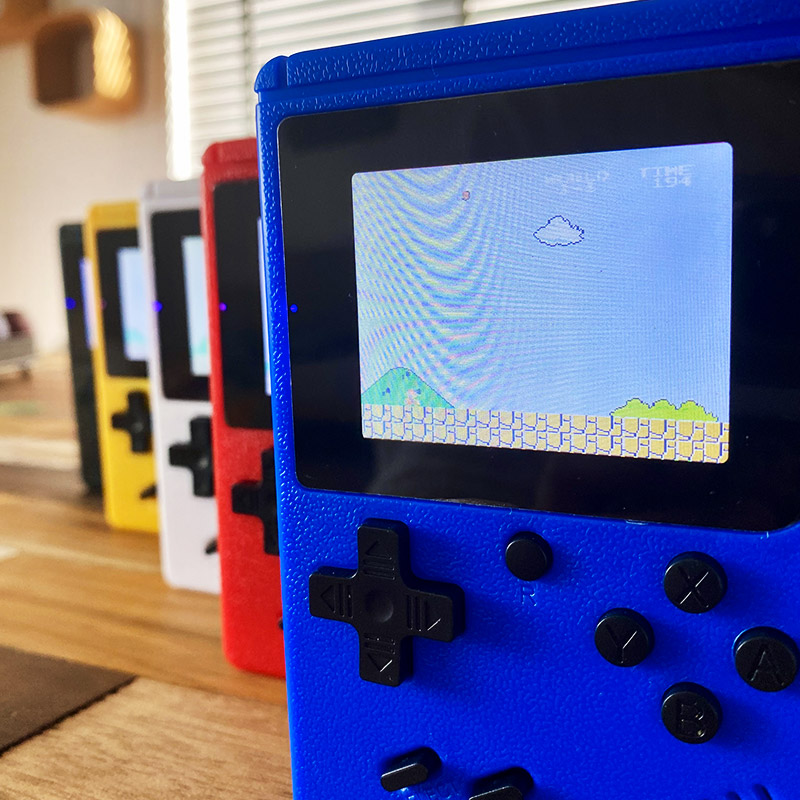 Appel aux Retrogamers ! La console de jeux Game Box vous propose un voyage dans le temps, avec plus de 400 jeux rétro. Cette console portable offre, pour certains, un retour en enfance et pour les plus jeunes, la joie de découvrir des jeux vidéo du passé. La console de jeu Game Box comprend 400 jeux de la célèbre marque japonaise Nintendo. Elle reprend les titres 8 bits les plus connus de la Nintendo NES (Famicom) et Super Nintendo (Super Famicom). Des classiques indémodables qui regroupent des jeux d'aventure et d'arcade en 2D. Redécouvrez ce plaisir retro de votre enfance. La Game Box est une console légère, portable et mince. Son format vous permettra de geeker n'importe où, tant elle est discrète et facile à transporter. La Game Box possède une batterie au lithium rechargeable et un câble USB Plug & Play. Elle possède une autonomie de 6 heures vous permettant de faire de longues parties. Cette console de jeux est équipée de câbles de sortie vidéo et audio. L'écran LCD super large de 3 pouces peut être connecté au téléviseur via la sortie AV. Vous pourrez, vous et vos enfants, profiter plus facilement de tous ces jeux vidéo animés et passionnants sur un grand écran. Replongez dans la magie de votre enfance ou faites découvrir vos jeux préférés des années 80 et 90 à vos enfants. Retrouvez parmi plus de 400 titres : Super Mario Bros,Teenage Mutant Ninja Turtles,Contra,Chip 'n' Dale,Adventure Island,Bubble Bobble,Ninja Gaiden,Double Dragon,Robocop,Mortal Kombat,Spider Man,Aladdin,Bomber Man,Donkey Kong,Ice Climber,Pacman,Popeye,Tetris,Spy vs Spy,The Goonies,Back to the Future,Paperboy Caractéristiques : x1 console de jeu rétro portable Couleur au choix : Noire, blanche, rouge, bleue, jaune Écran : LCD couleur de 3 pouces Batterie intégrée de 1020 mAh Autonomie : jusqu'à 6 heures Inclus : 1x mini console de jeu portable 1x câble AV (Prise en charge de la connexion TV) 1x câble USB (Rechargement de la console) 1x batterie Lithium rechargeable