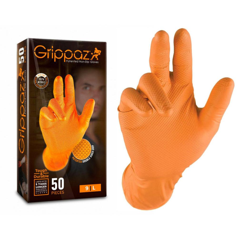 GANTS JETABLES GRIPPAZ EN NITRILE SANS SILICONE ORANGE - TAILLE L - 50 GANTS