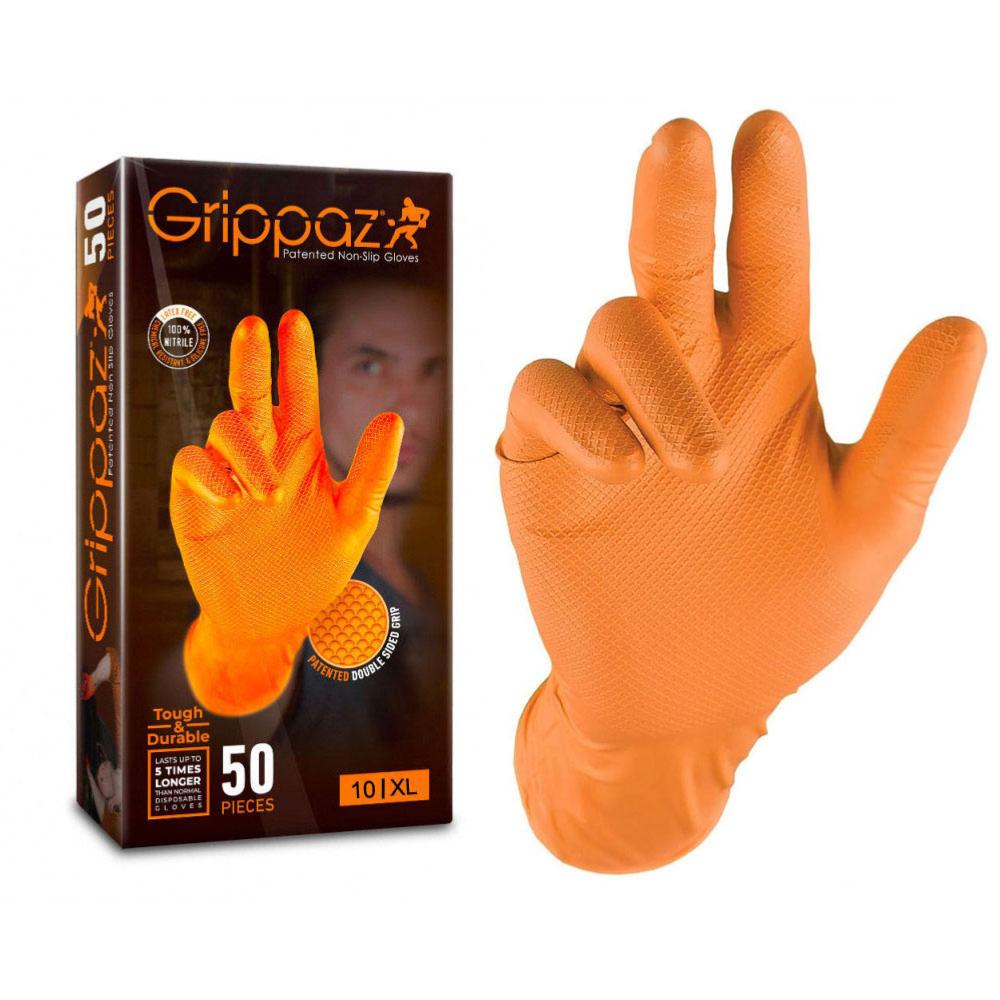 GANTS JETABLES GRIPPAZ EN NITRILE SANS SILICONE ORANGE - TAILLE XL - 50 GANTS