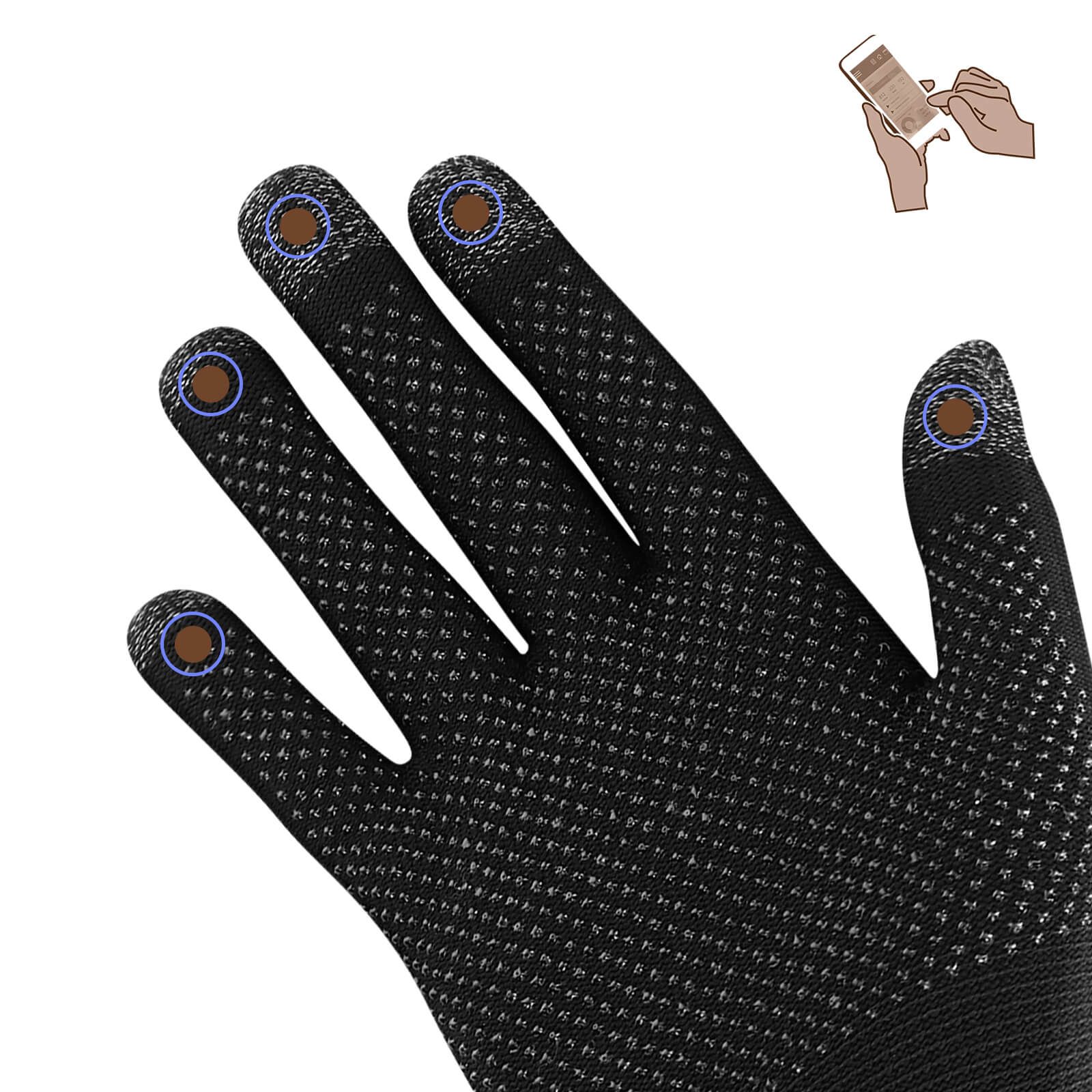 Une paire de gants tactiles ultra-extensibles, permettant d'utiliser votre appareil sans se découvrir les mains. Tissus conducteurs sur tous les doigts pour fonctionner avec votre écran tactile. Ultra-fins pour une usage multiple. Grips antidérapants.