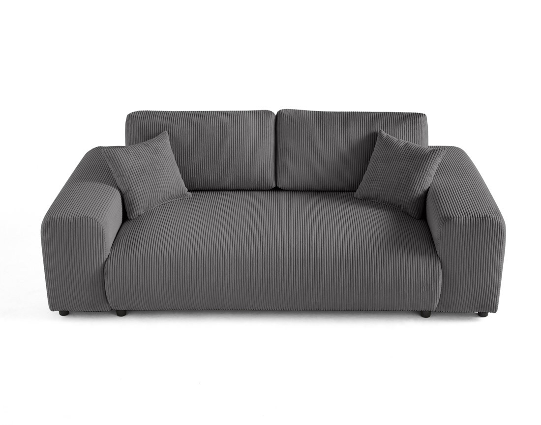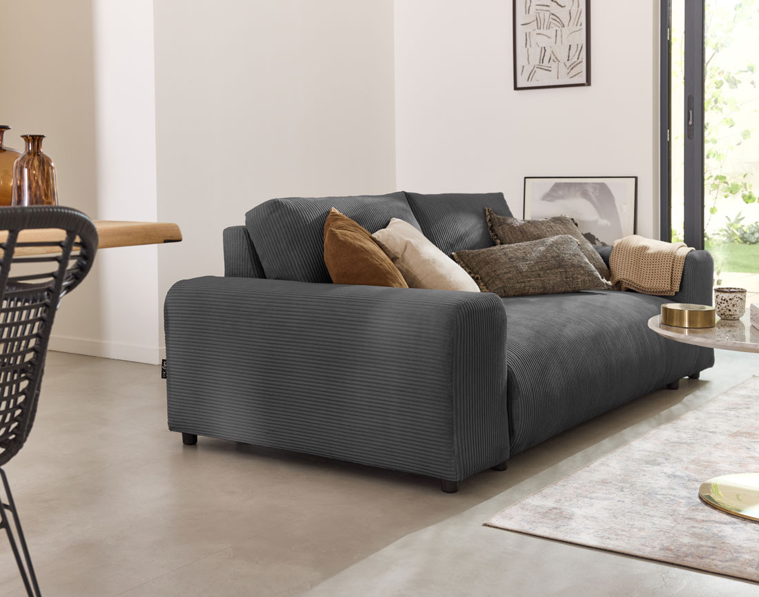- Détail des matières : Assise : Mousse polyuréthane 30kg/m3 – Dossier : Mousse polyuréthane 30kg/m3 - Ressorts ondulés – Structure : Bois massif et panneaux de particules - Revêtement en velours côtelé 100% polyester - Pieds en plastique
