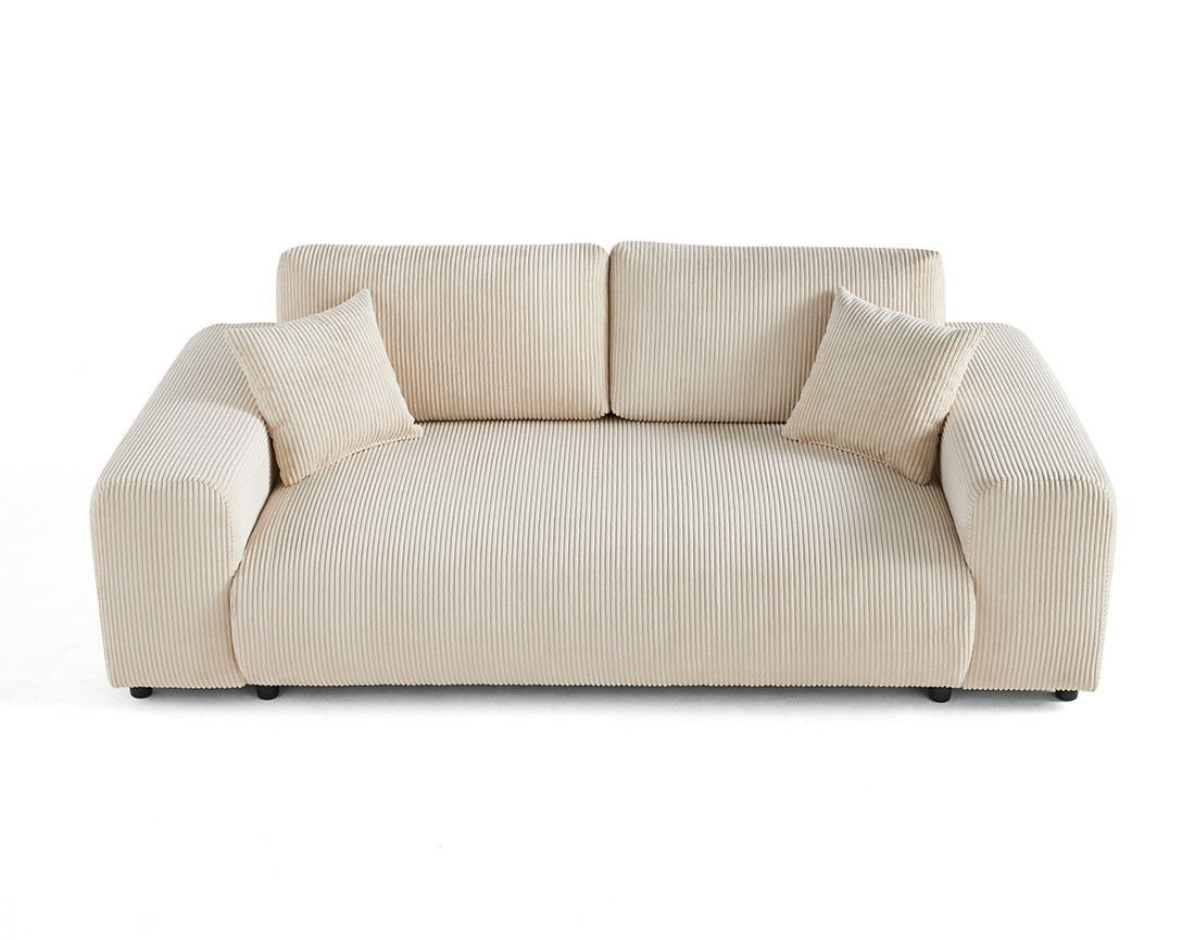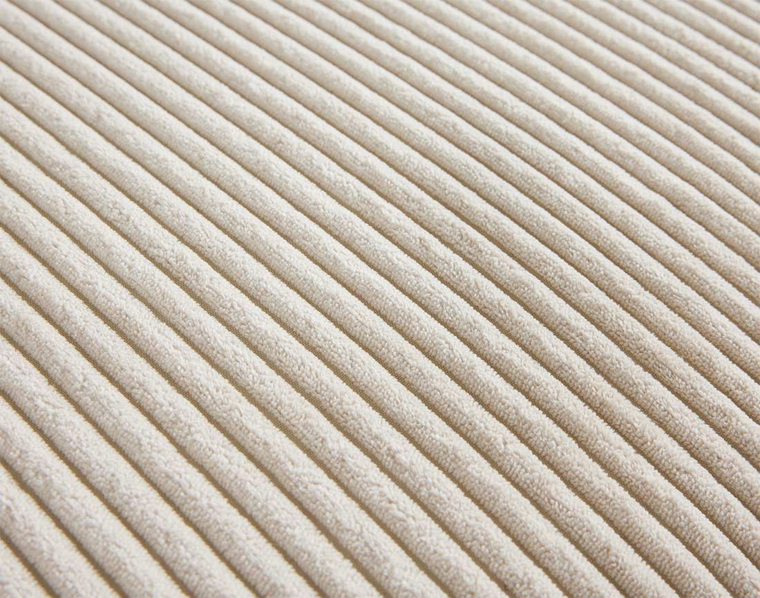 - Détail des matières : Assise : Mousse polyuréthane 30kg/m3 – Dossier : Mousse polyuréthane 30kg/m3 - Ressorts ondulés – Structure : Bois massif et panneaux de particules - Revêtement en velours côtelé 100% polyester - Pieds en plastique