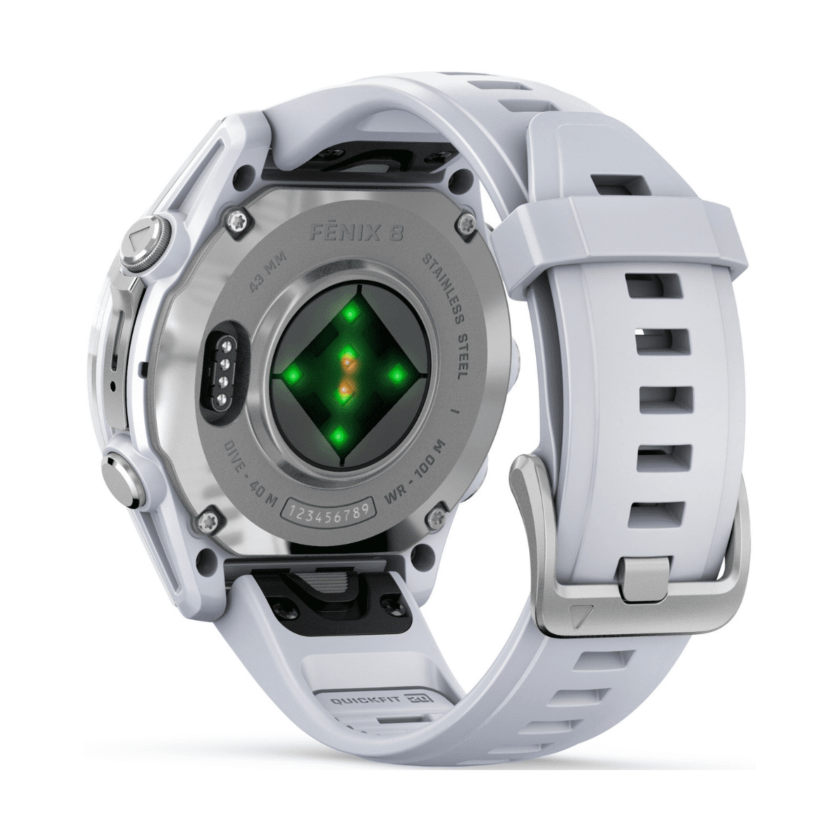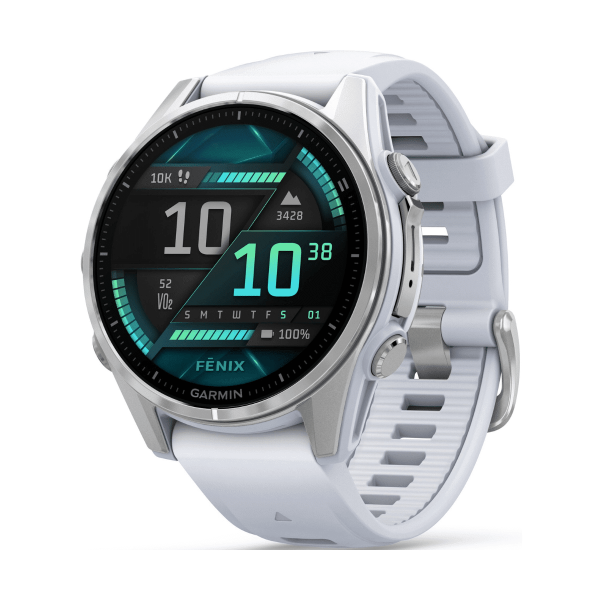 Garmin Fenix 8 AMOLED 43 mm GPS Argent avec bracelet en silicone blanc (White)