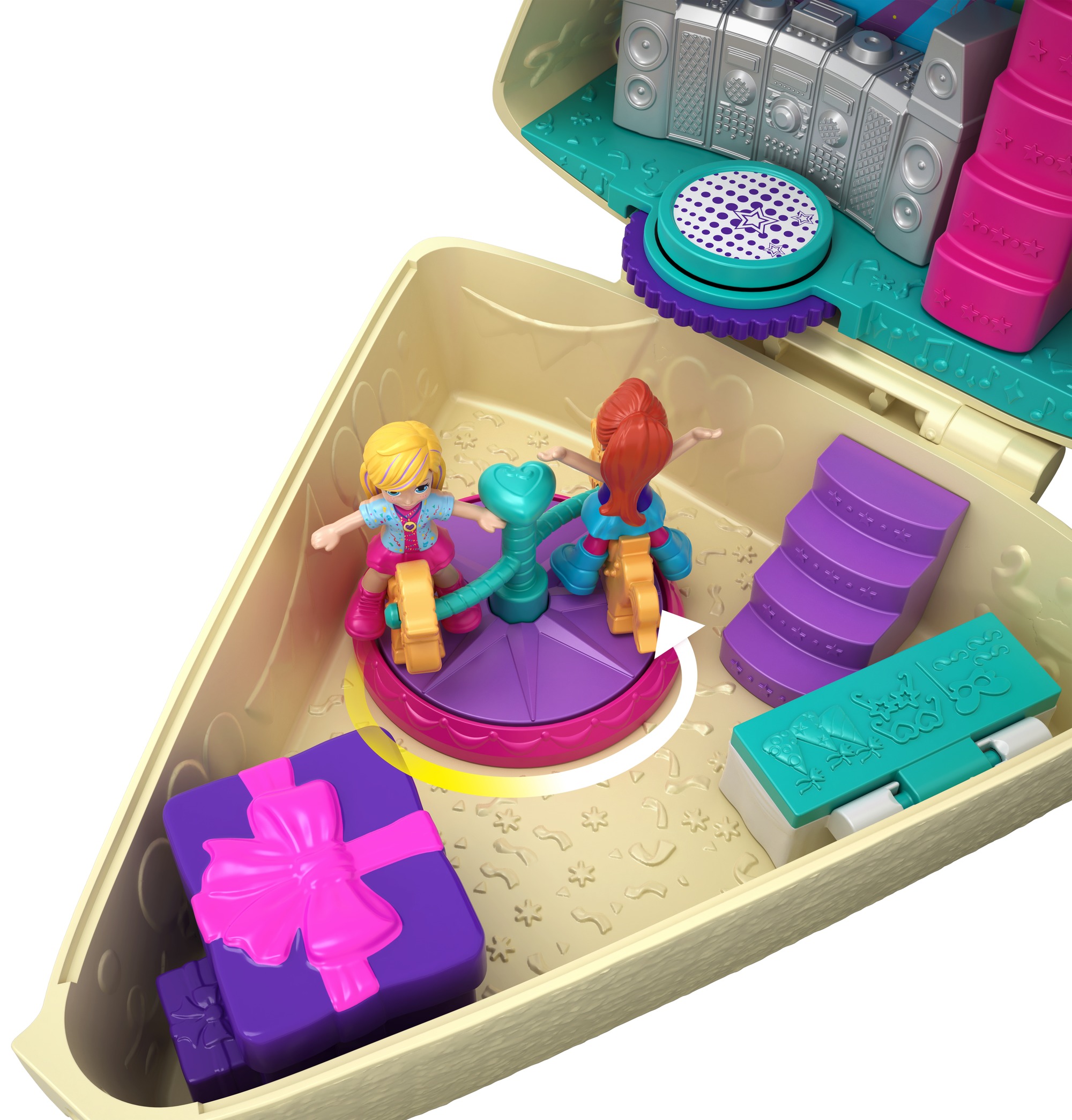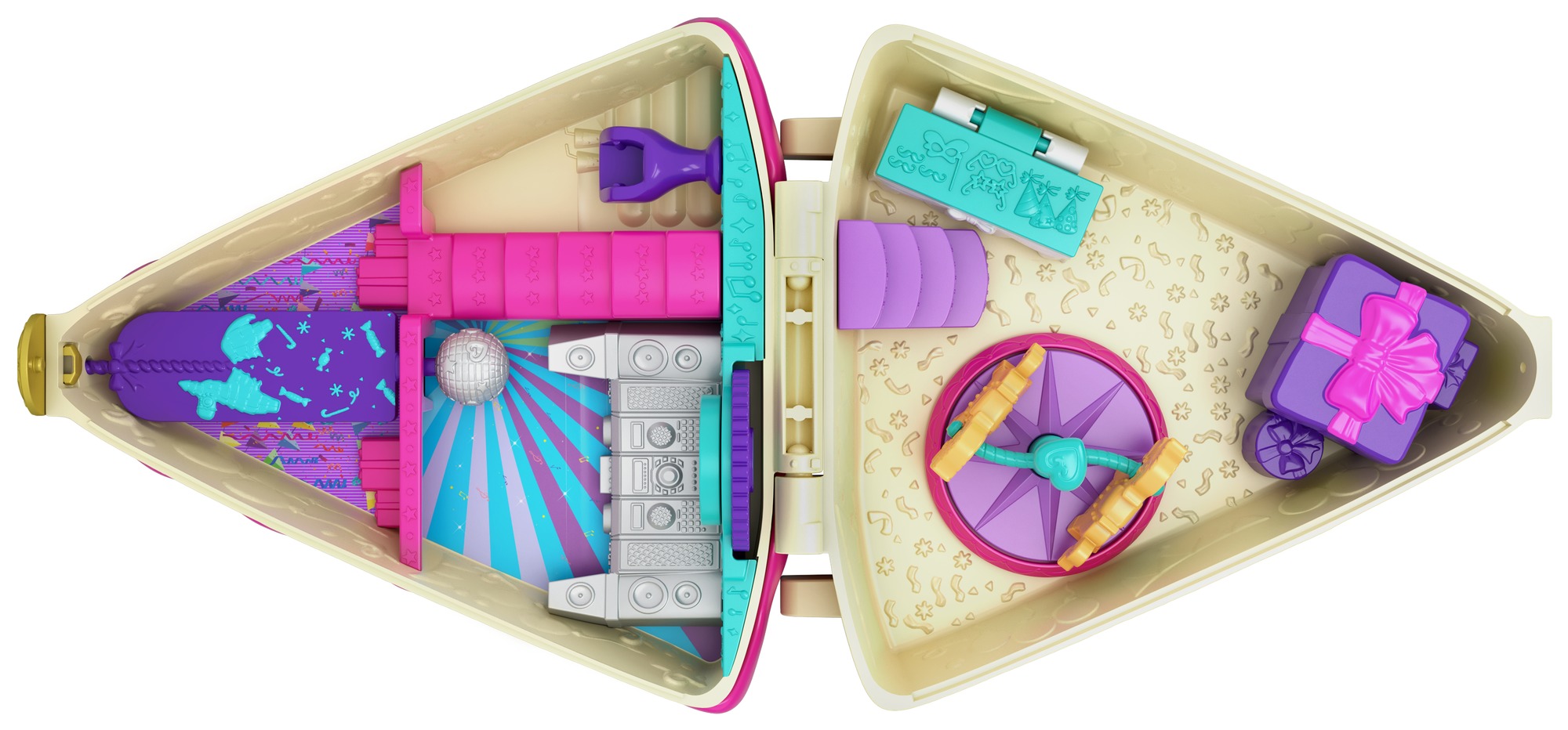 Ce coffret univers "Gateau d'anniversaire" s'ouvre sur un univers thématique recelant des surprises avec des mini-figurines et des accessoires. Chaque coffret univers Polly Pocket est si compact qu'on peut emmener Polly partout à l'aventure !