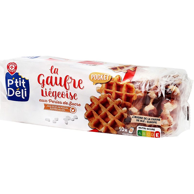 | Origine des principaux ingrédients | FARINE DE BLE ORIGINE : EUROPE, PERLE DE SUCRE TRANSFORMEE EN : BELGIQUE, OEUF ORIGINE : ALLEMAGNE, BELGIQUE ET/OU PAYS-BAS* * SELON LES APPROVISIONNEMENTS ET/OU LES CARACTÉRISTIQUES GUSTATIVES RECHERCHÉES |