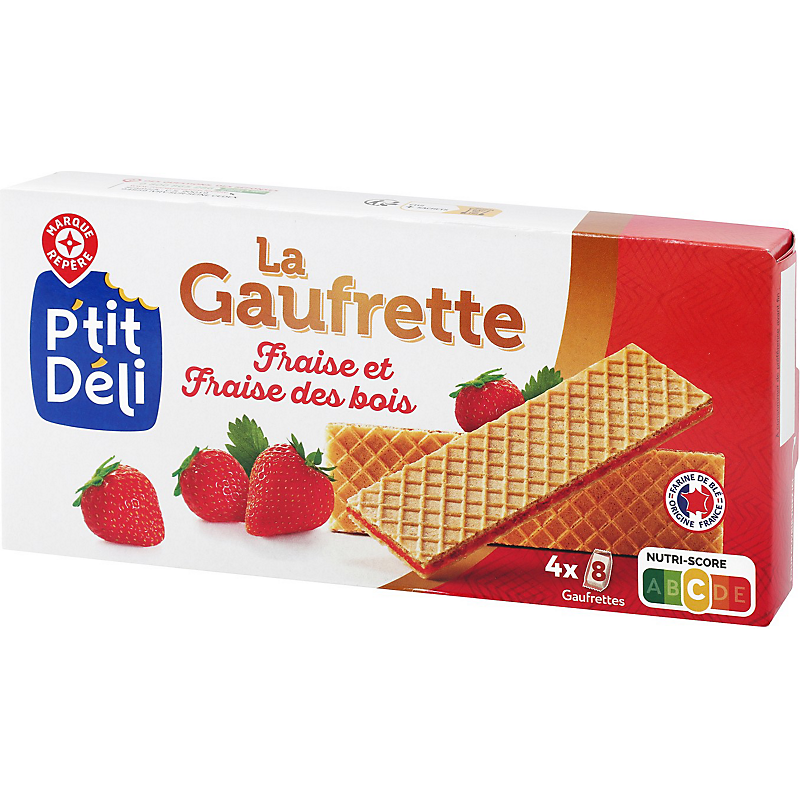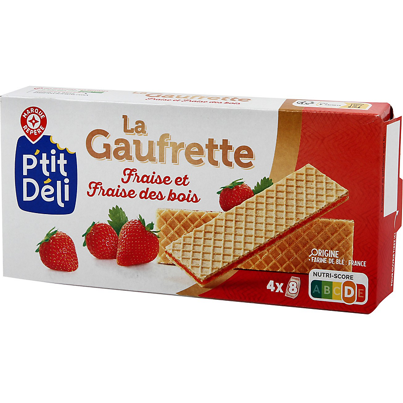 Gaufrettes avec 66,3% de fourrage à la purée de fraise et fraise des bois, aromatisées P'TIT DELI