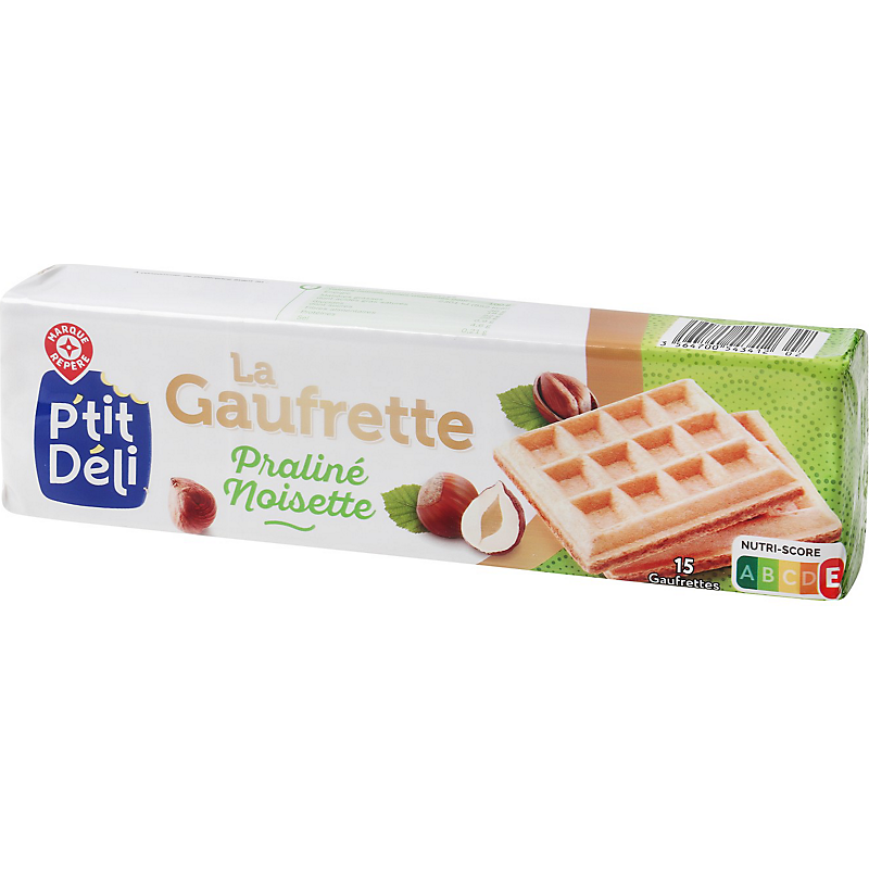 Gaufrettes avec 67,5 % de fourrage au praliné noisette P'TIT DELI