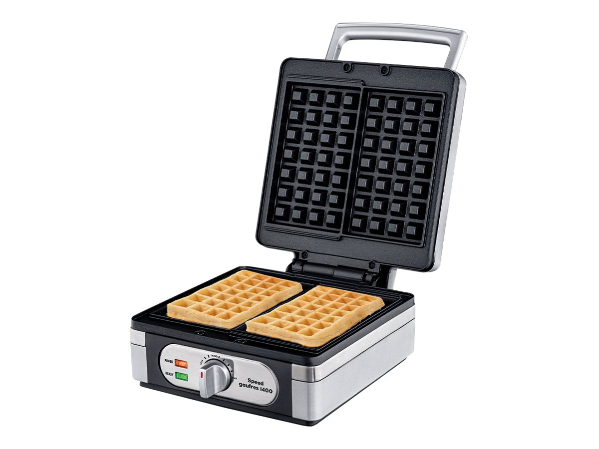 8384 - gaufrier 1400w inox - le Gaufrier speed 8384 little balance vous permettra de réaliser de grandes gaufres croustillantes à l'extérieur et moelleuses à l'intérieur. Plaques en fonte d'aluminium qui accumulent la chaleur avec revêtement anti-adhésif. Trous plus profonds. Témoin d'appareil prêt à utiliser.