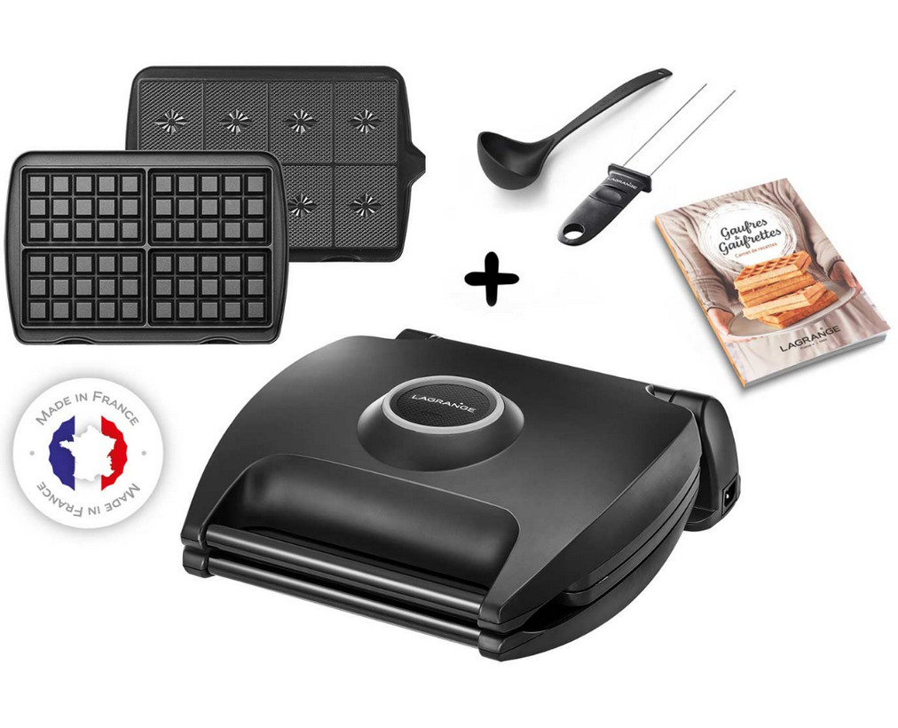 089003 - gaufrier 1700w noir - Le gaufrier Lagrange 089003 est le gaufrier familial pour une cuisson généreuse. Produit conçu et assemblé en France. Grande capacité de cuisson : format gourmand de la gaufre de foire et cuisson de 4 gaufres à la fois pour plus de générosité et de rapidité. Modulable : plaques amovibles pour plus de gourmandise et pour un entretien facilité. Simple d'utilisation : thermostat pré-réglé pour une cuisson des gaufres dorées et croustillantes à l'extérieur et moelleuses à l'intérieur. Une cuisson homogène : appareil réversible sur socle pour une bonne répartition de la pâte.