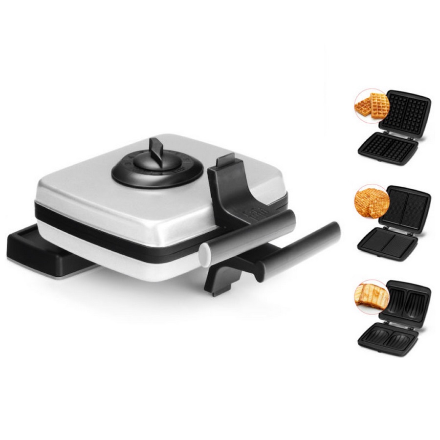 Accessoire(s) inclus : 3 jeux de plaques pour gaufres, gaufrettes et croque-monsieur.