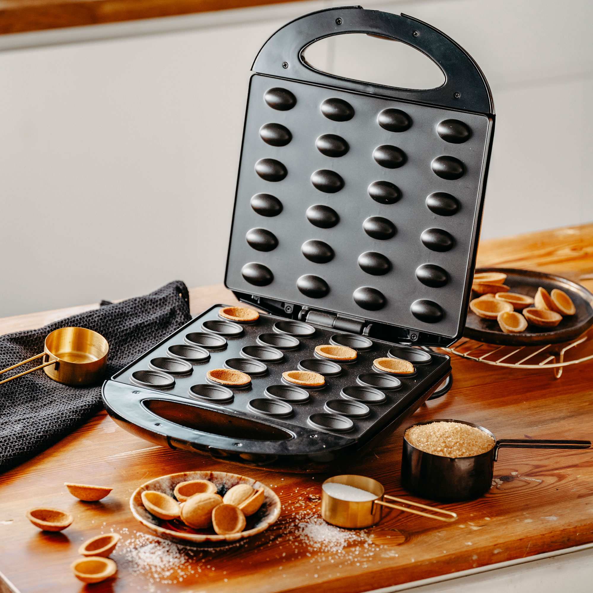 - Dispositif de cuisson pour la fabrication de biscuits fourrés en forme de noix.