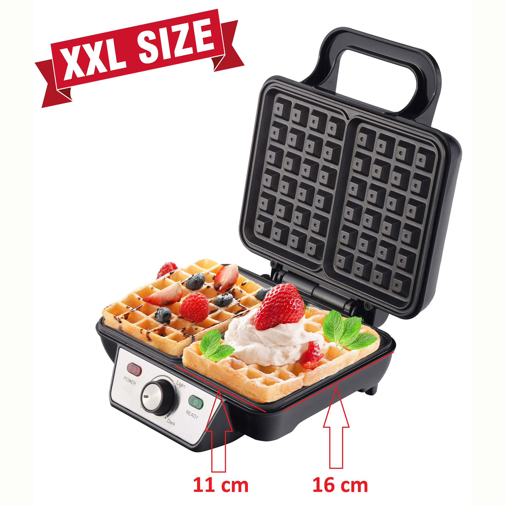 - 1600W de Puissance : Sa puissance maximale de 1600W permet un chauffage rapide afin que vous puissiez profiter de délicieuses gaufres cuites en peu de temps.