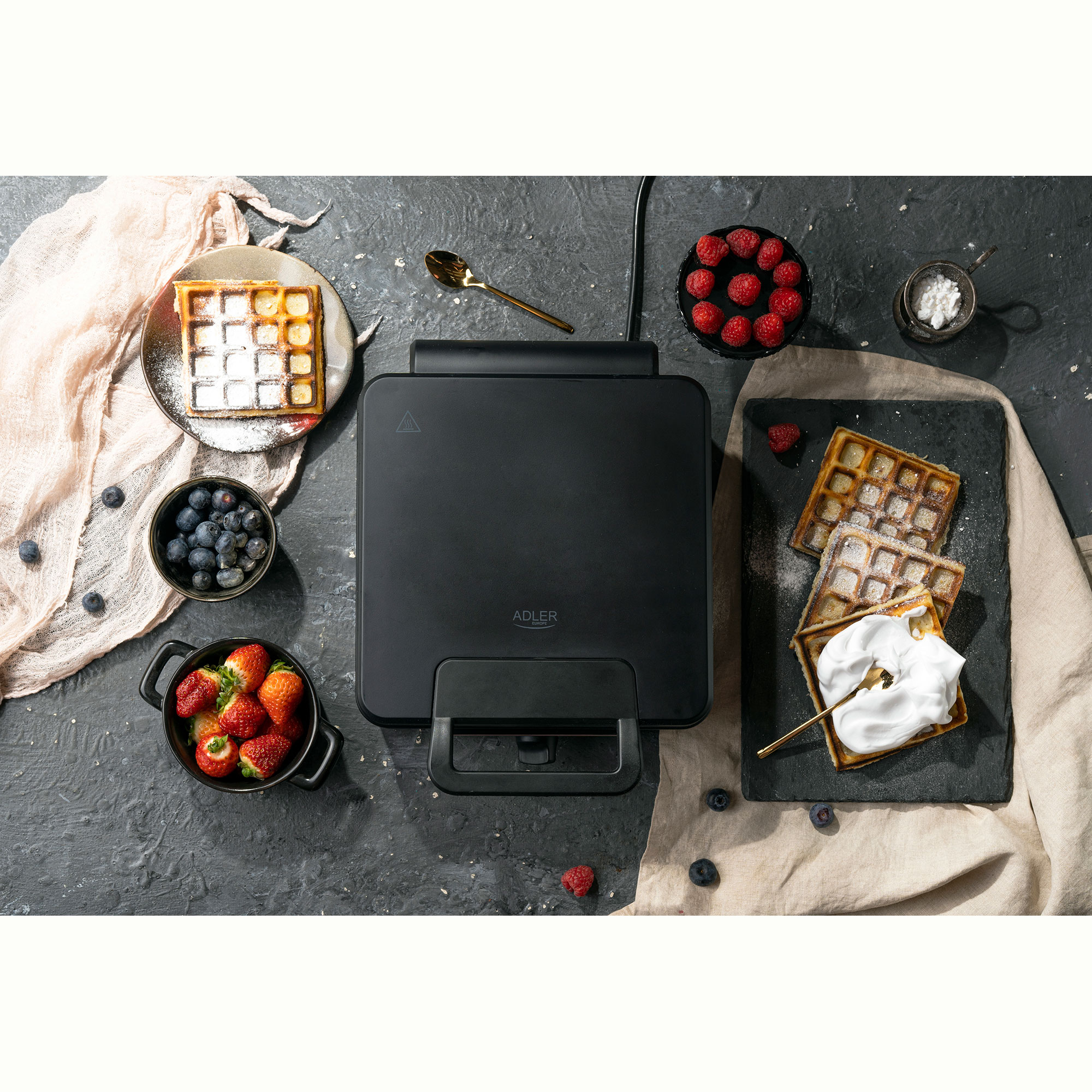 | Libellé | Gaufrier Professionnel pour 4 Gaufres Belges Épaisses, Plaques Antiadhésives 1800 Noir AdlerAD3049 |
