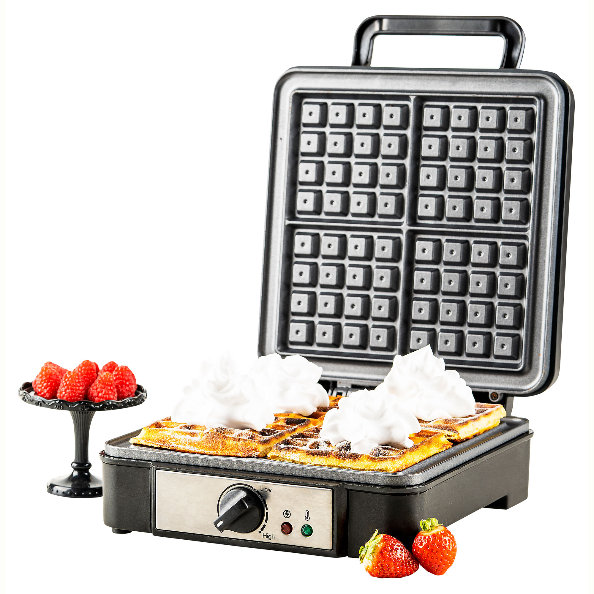 - 4 Gaufres : Le gaufrier vous permet de cuire jusqu'à 4 gaufres belges de 10 x 10 cm chacune en une seule fois. Idéal pour un petit-déjeuner en famille. Peut être stocké à la verticale pour prendre moins de place dans n'importe quel placard.