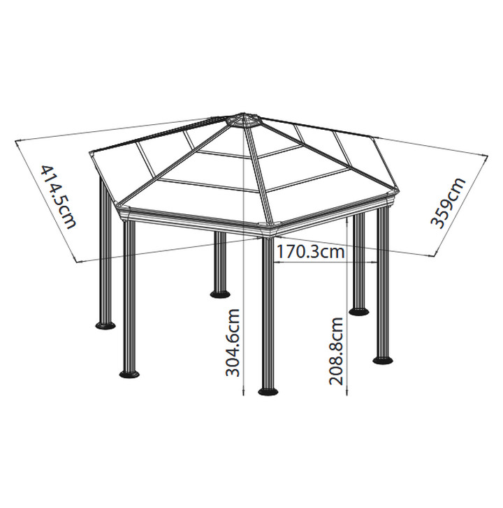 | Libellé | Gazébo tonnelle hexagonale 11.16m² gris anthracite roma - 703445 - palram |