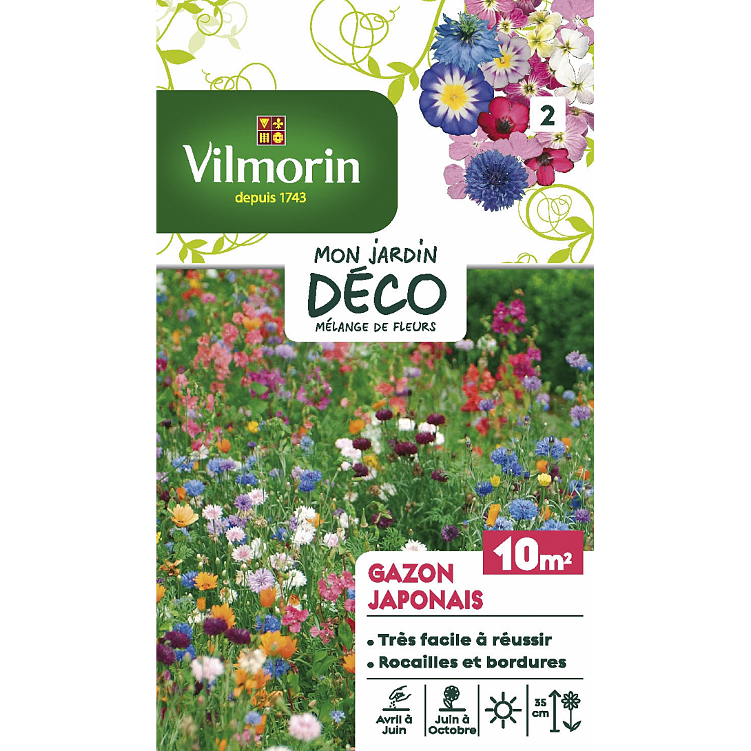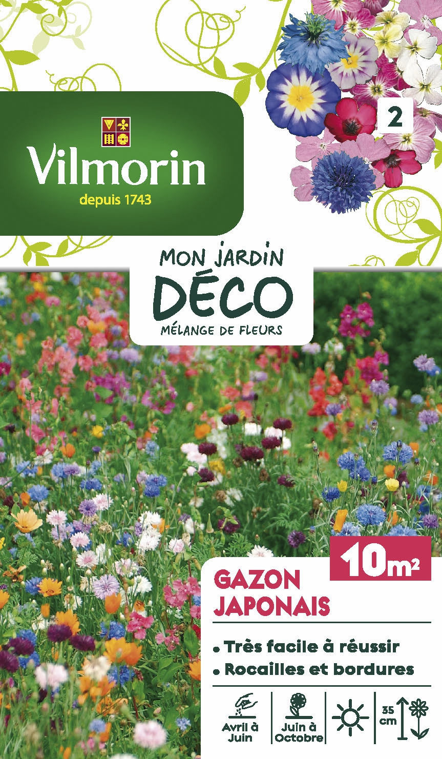 Le gazon japonais est particulièrement intéressant pour décorer un coin de jardin ou réaliser un talus fleuri de plus il fleurit facilement au soleil. Il est composé de fleurs naines annuelles et vivaces telles que l'alysse, la belle de jour, la centaurée, la julienne de mahon, le lin, le matthiola, la nigelle et le saponaire.