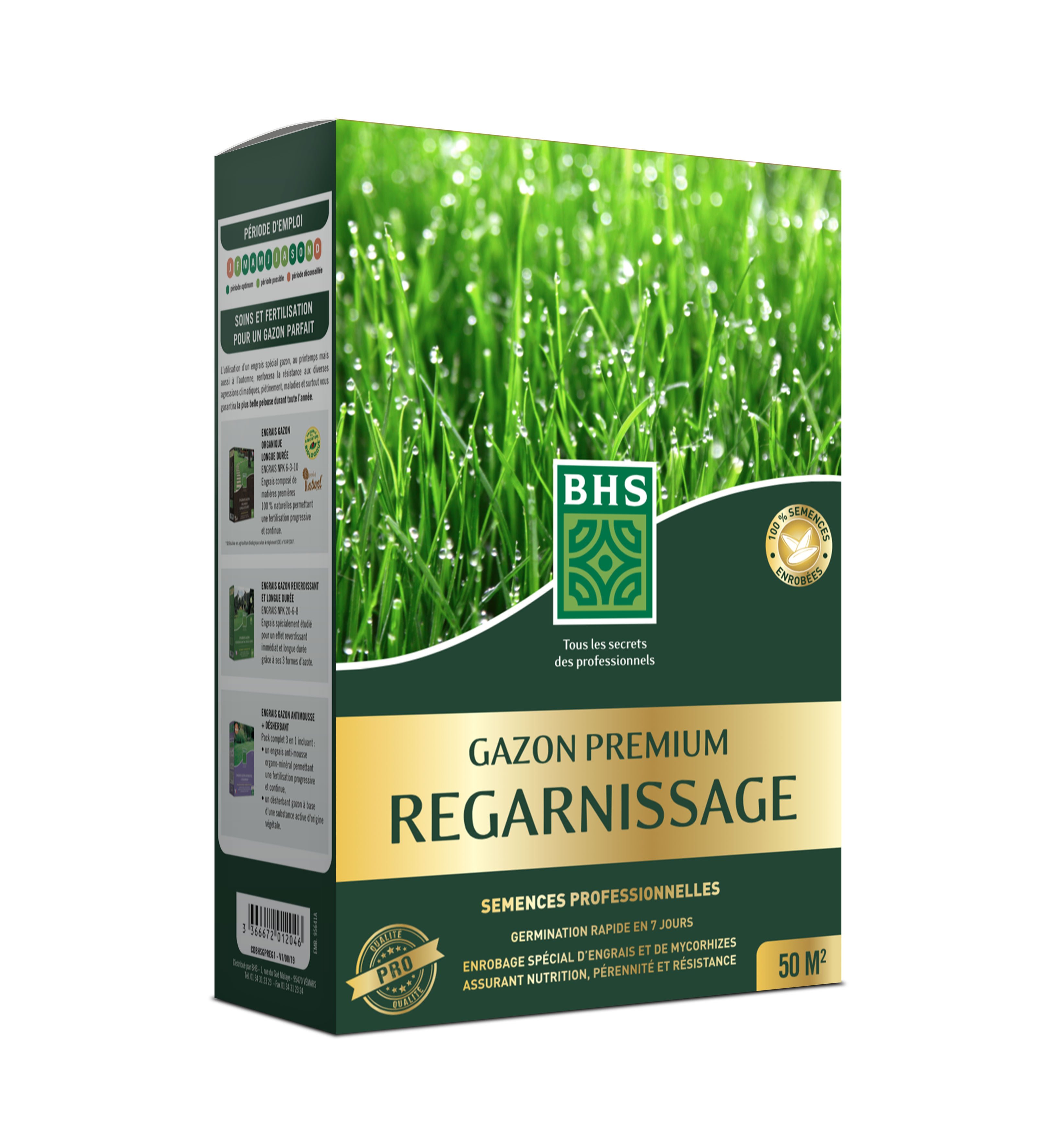 Gazon Premium Regarnissage, 100% Semences Enrobées.