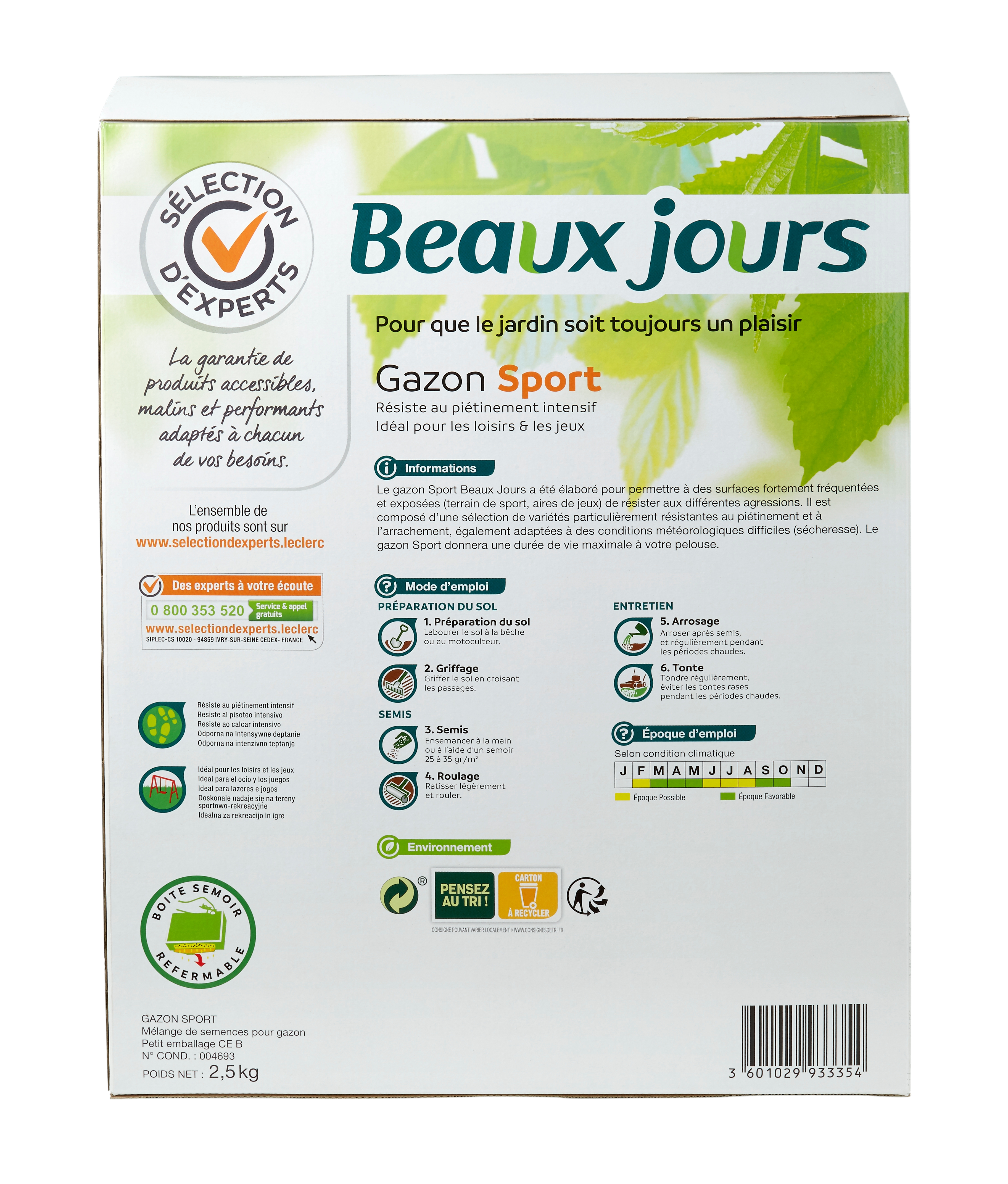 | Libellé | Gazon sport 2,5kg - Sélection d'Experts - Beaux Jours |