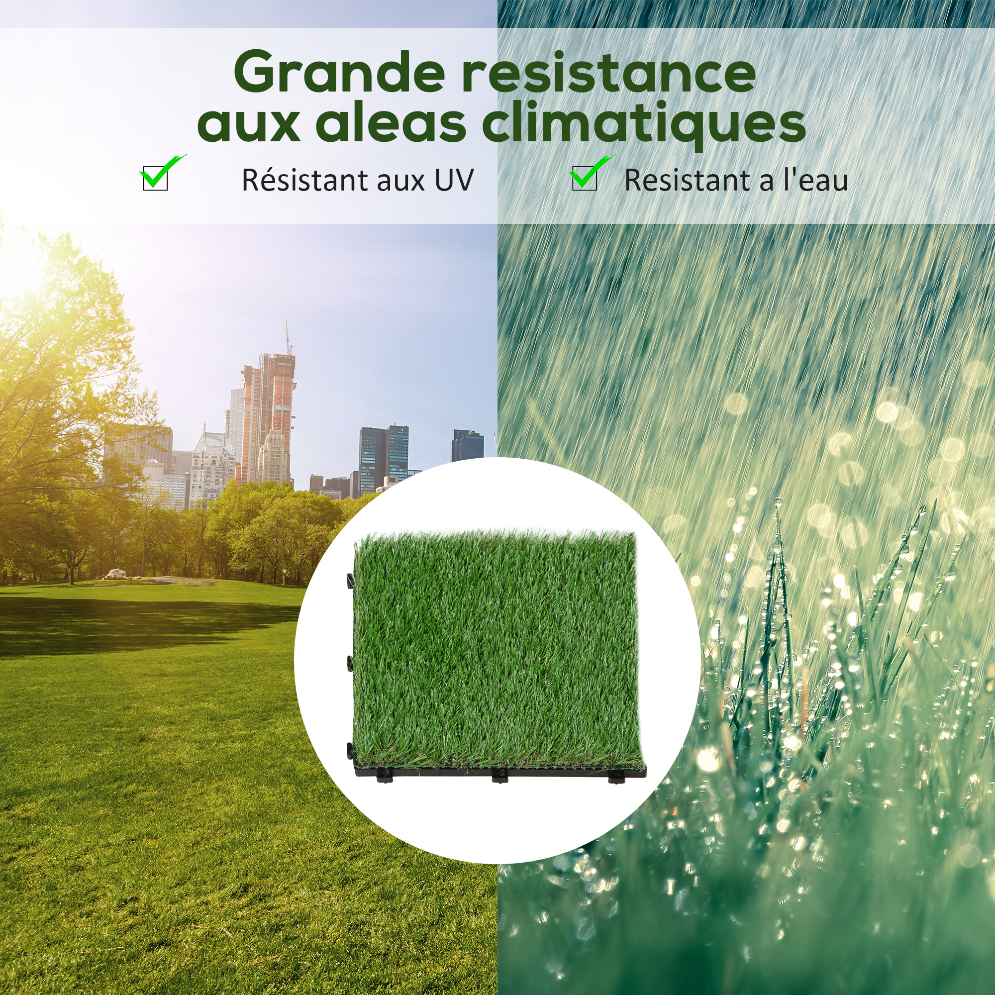 Gazon synthétique artificiel set de 10 dalles carreaux 30 x 30 cm épaisseur confort 3,5 cm à emboîter ver