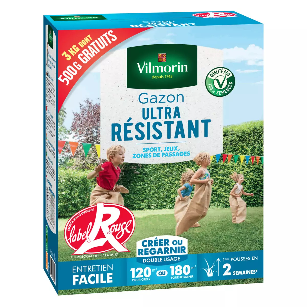 Libellé Gazon ultra résistant - Boite de 3 kgs dont 500g GRATUIT