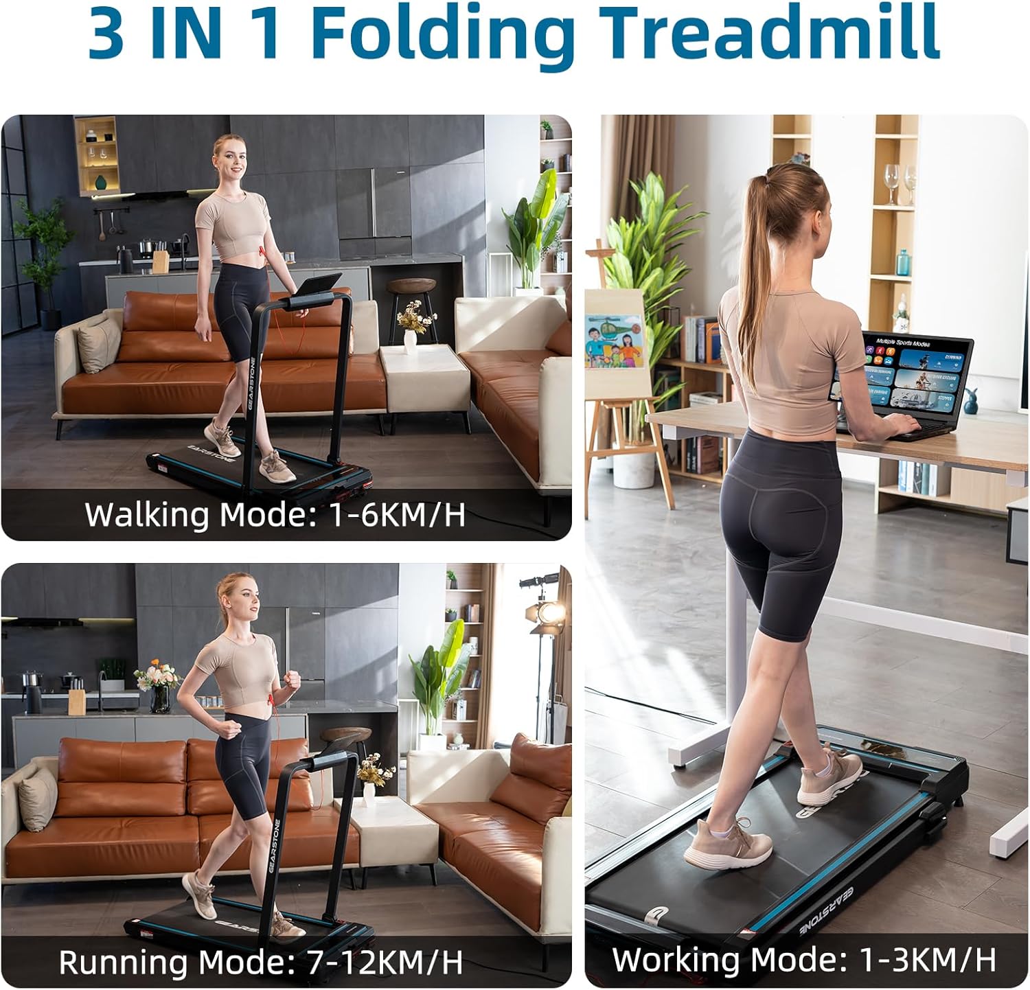 🏃♂️ Tapis de Course 3-en-1 : Pour Tous Vos BesoinsLe tapis de course GEARSTONE 3-en-1 est conçu pour répondre à tous vos besoins en matière de fitness. Il offre trois modes :