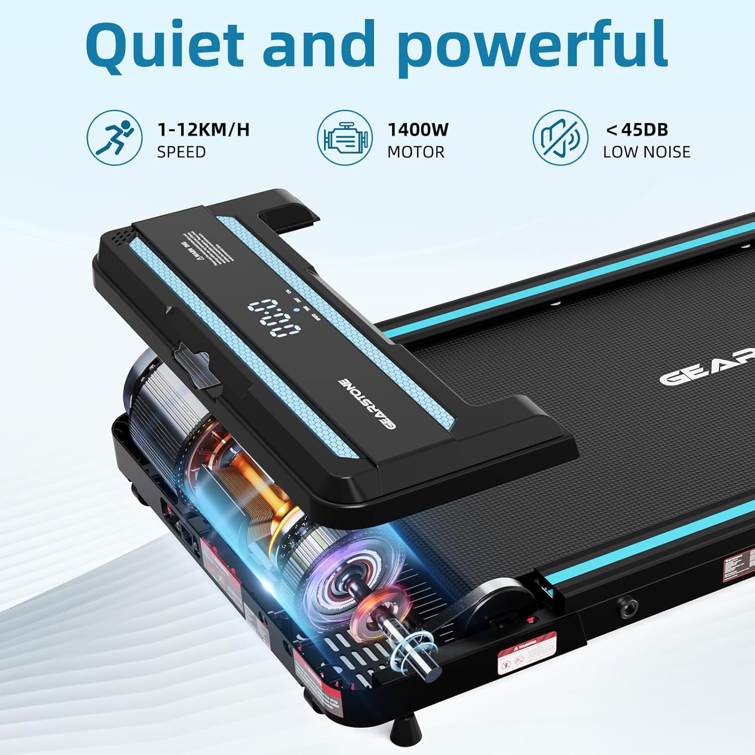 🔇 Moteur Puissant et Silencieux : Performance sans BruitLe moteur de 1400W du tapis de course GEARSTONE combine puissance et silence. Vous pouvez atteindre une vitesse maximale de 12 km/h sans perturber votre environnement, idéal pour une utilisation à la maison ou au bureau. Profitez d’un entraînement tranquille, concentré et efficace sans les bruits gênants des moteurs traditionnels.