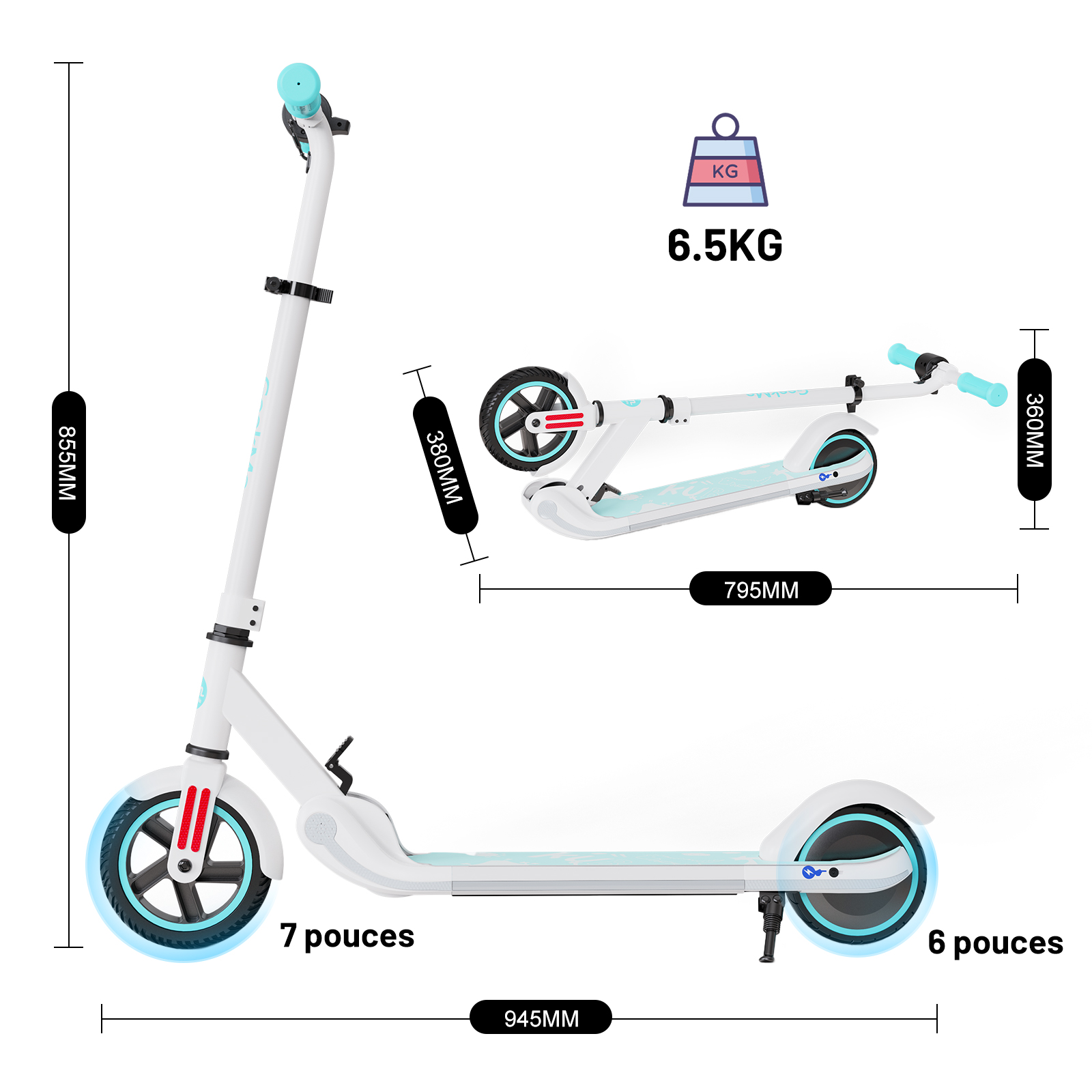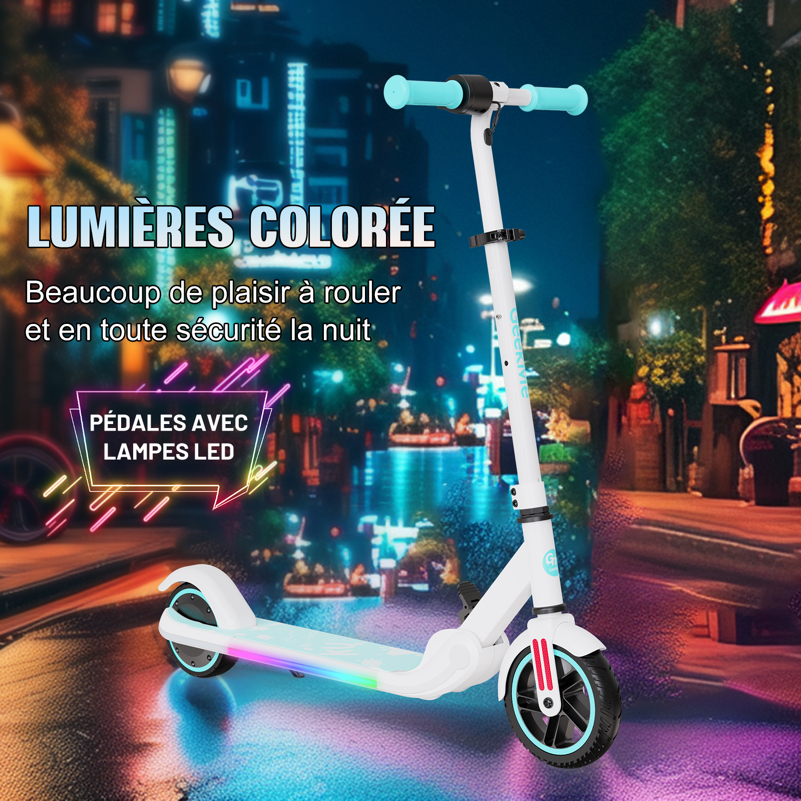 | Libellé | GeekMe Trottinette électrique pour Enfants - 200W - Néons colorés - Musique Bluetooth G11 Blanc |