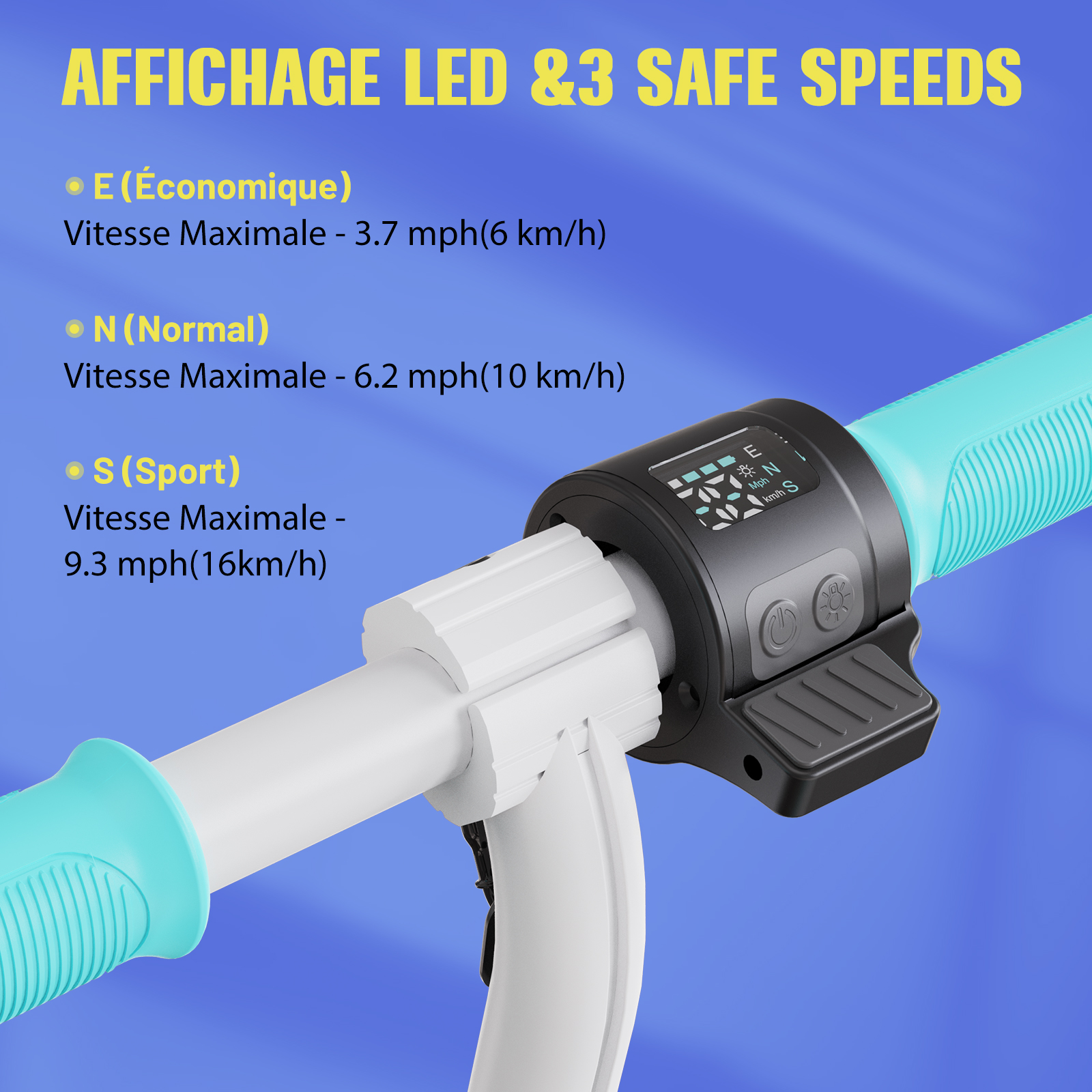 🍀【scooter électrique de sécurité】 pneus de 7 pouces avant et 6 pouces arrière solides + démarrage non nul + frein a pied mécanique, donner une sécurité à l'enfant.