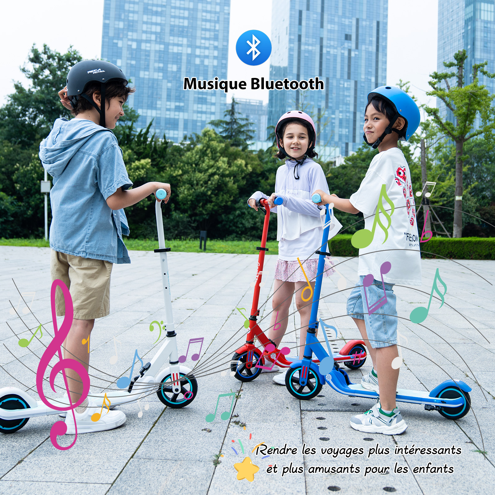 GeekMe Trottinette électrique pour Enfants - 200W - Néons colorés - Musique Bluetooth G11 Blanc