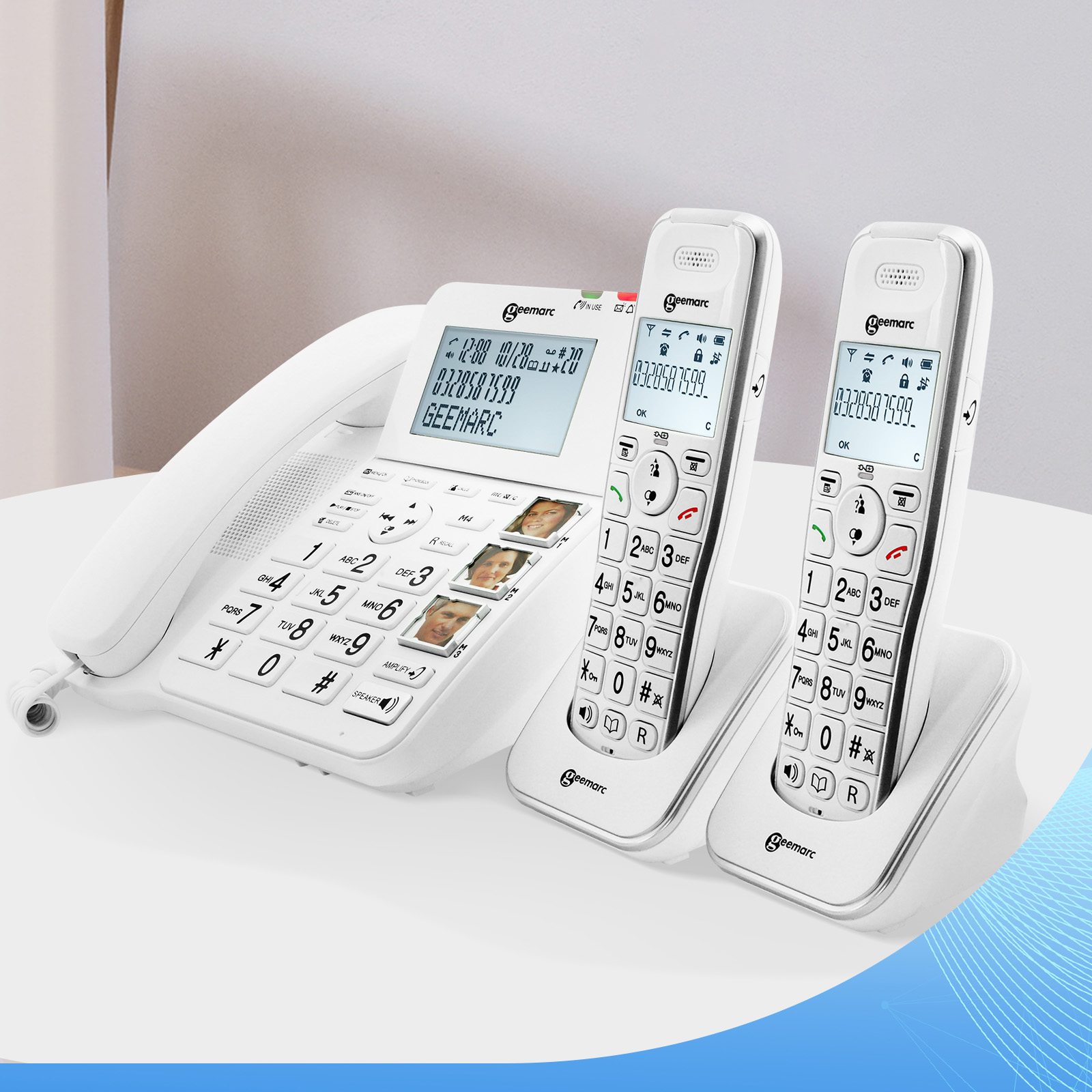 | Libellé | Geemarc Téléphone Fixe Senior Amplifié avec 2 Combinés Sans Fil Répondeur Blanc |