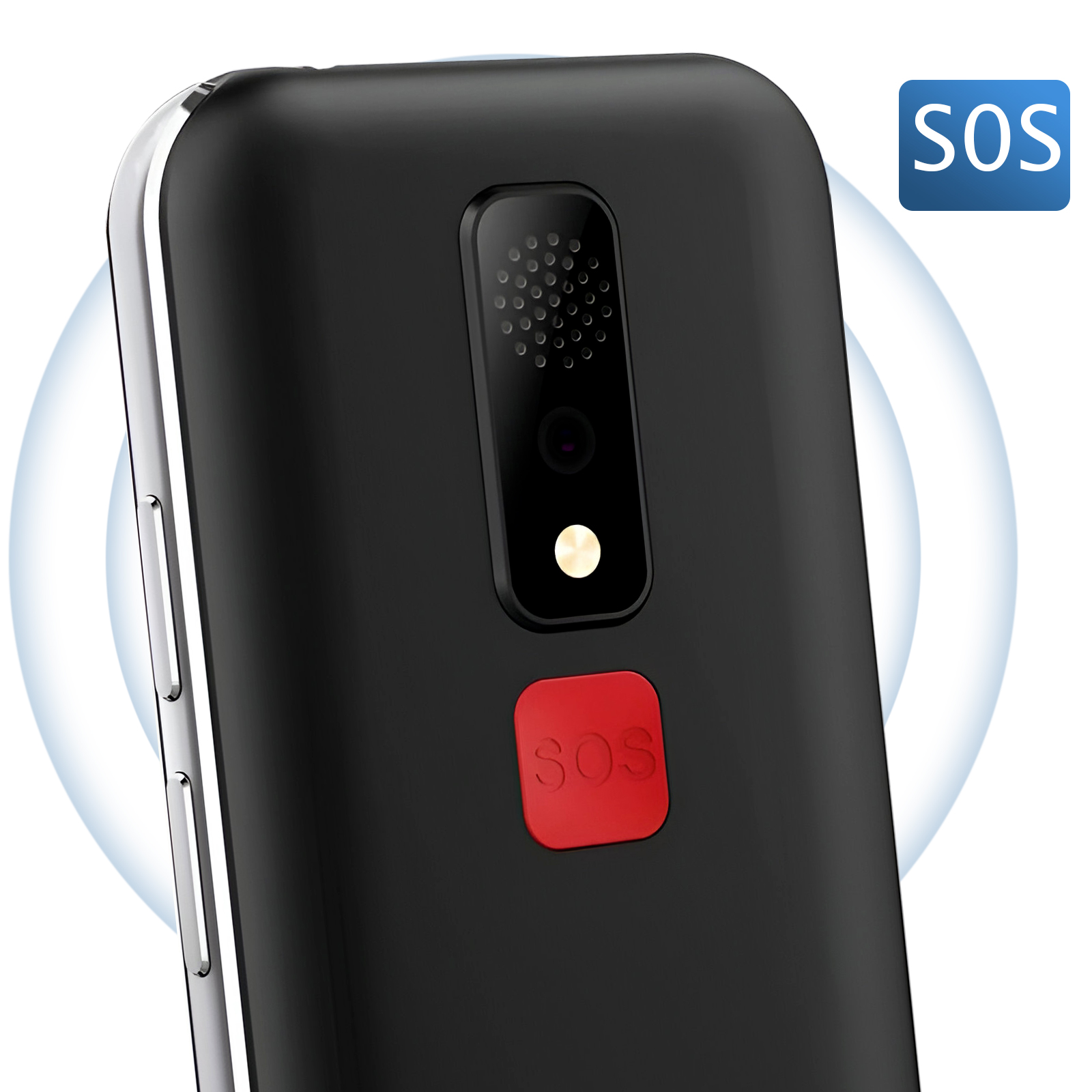 Geemarc Téléphone Portable Senior 4G - Boutons SOS - Mémoires Photos Noir