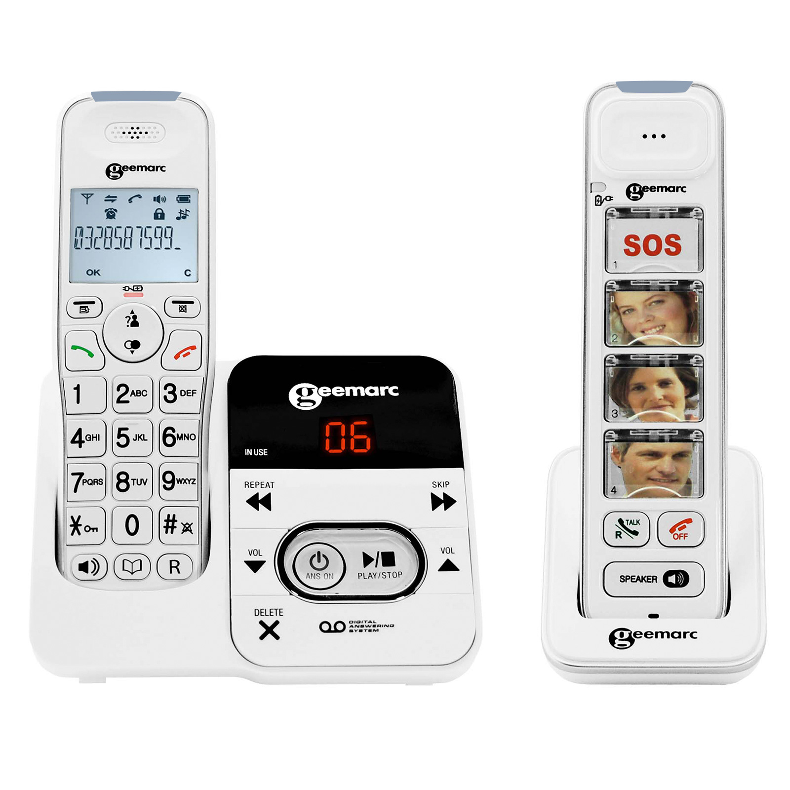 | Libellé | Geemarc Téléphone Senior Sans Fil Amplifié Combiné à Touches Photo Répondeur Blanc |