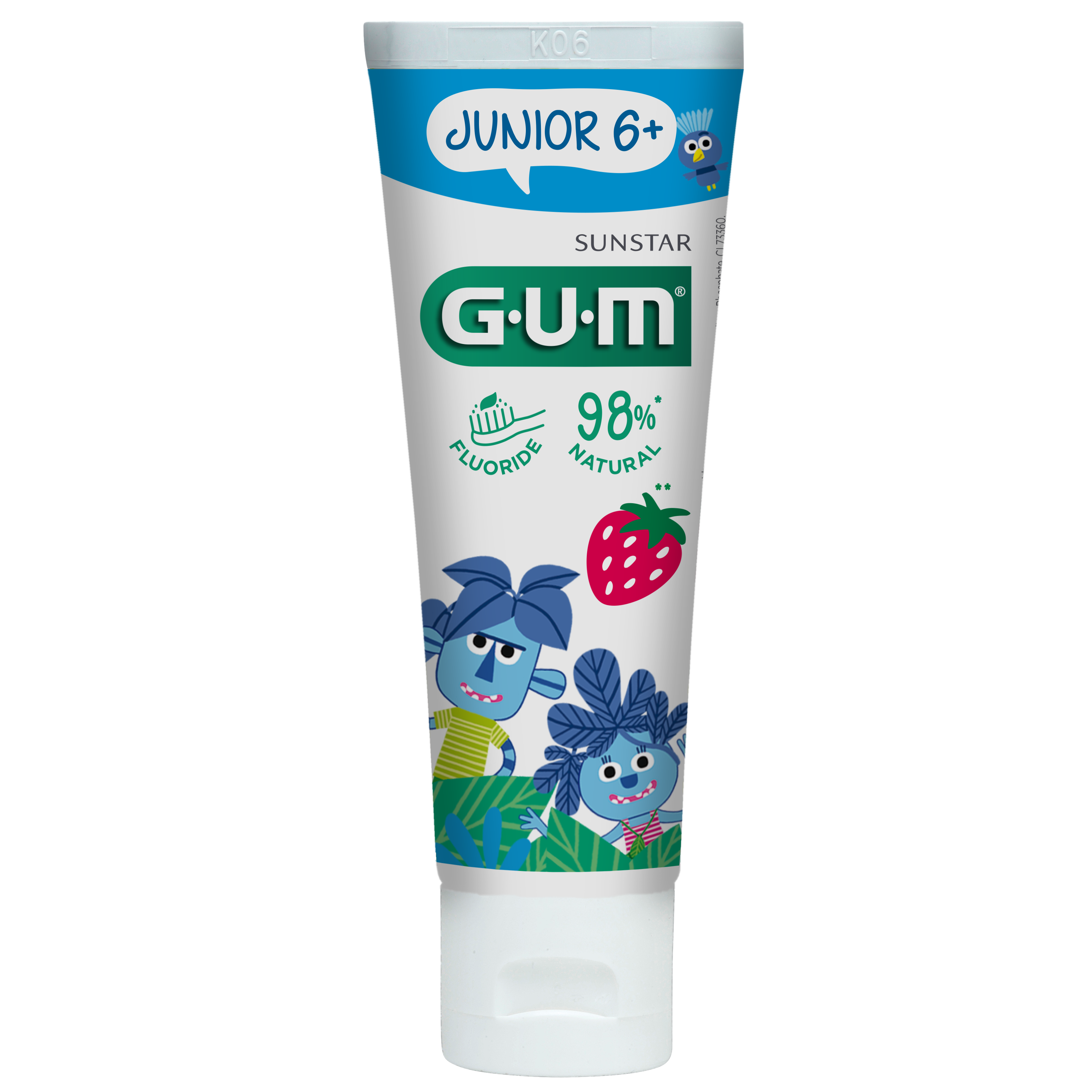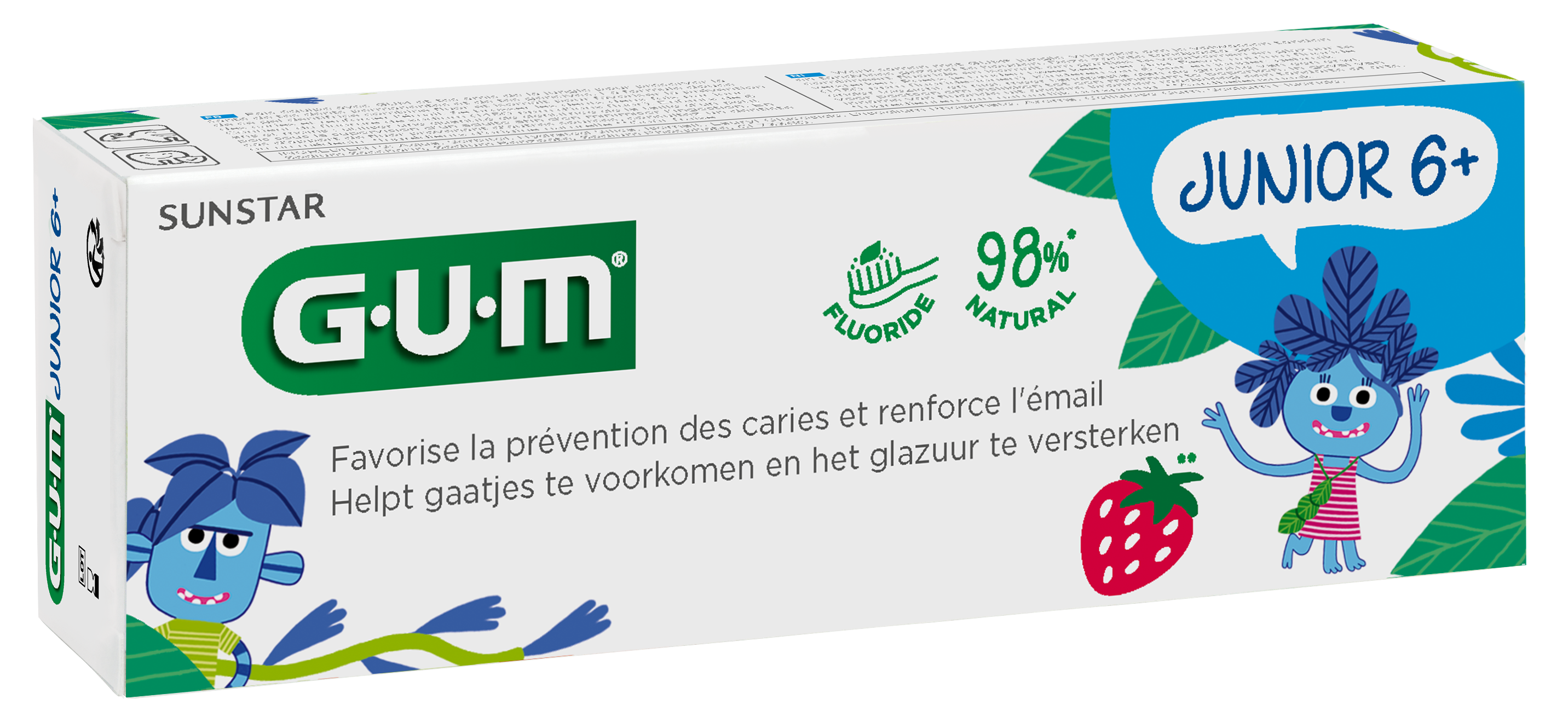 La formulation unique du dentifrice GUM JUNIOR, fluorée (1450 ppm de Fluor) combinée à l'Isomalt agit sur la reminéralisation, pour fortifier les dents définitives des enfants et les maintenir en bonne santé à chaque étape de leur formation. Il favorise la prévention des caries et protège contre les attaques acides Il aide à fixer le fluor du dentifrice sur l'émail pour des dents plus fortes. Au délicieux goût Fraise.