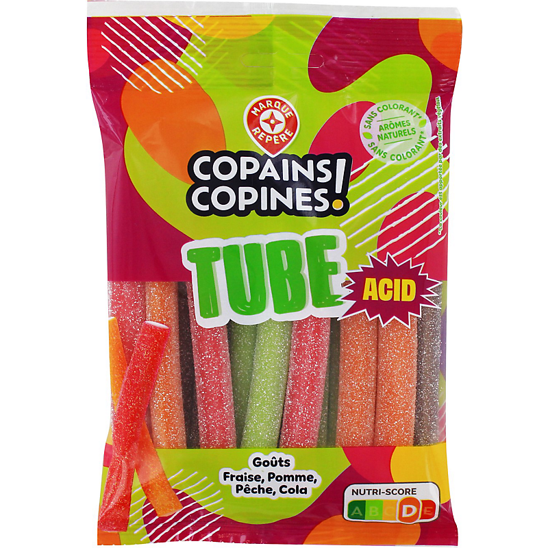 Gélifiés tubes acides goûts fruits et cola - 180 g - COPAINS COPINES
