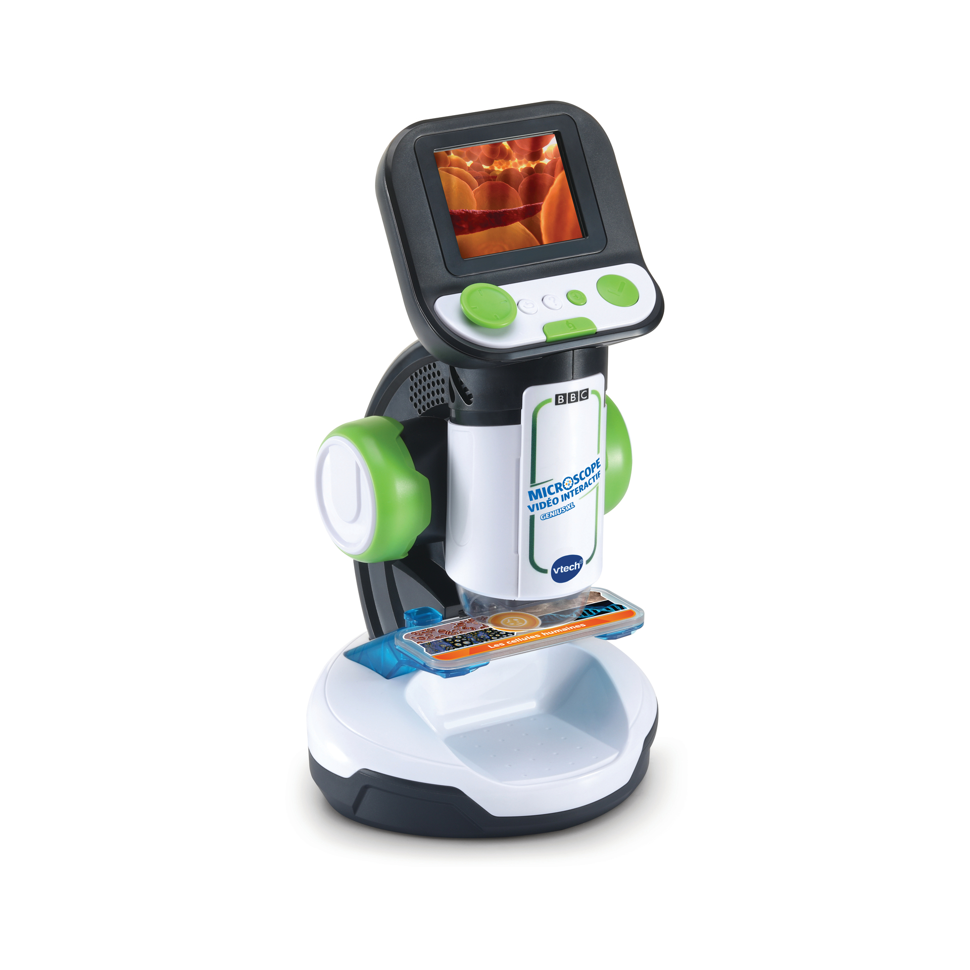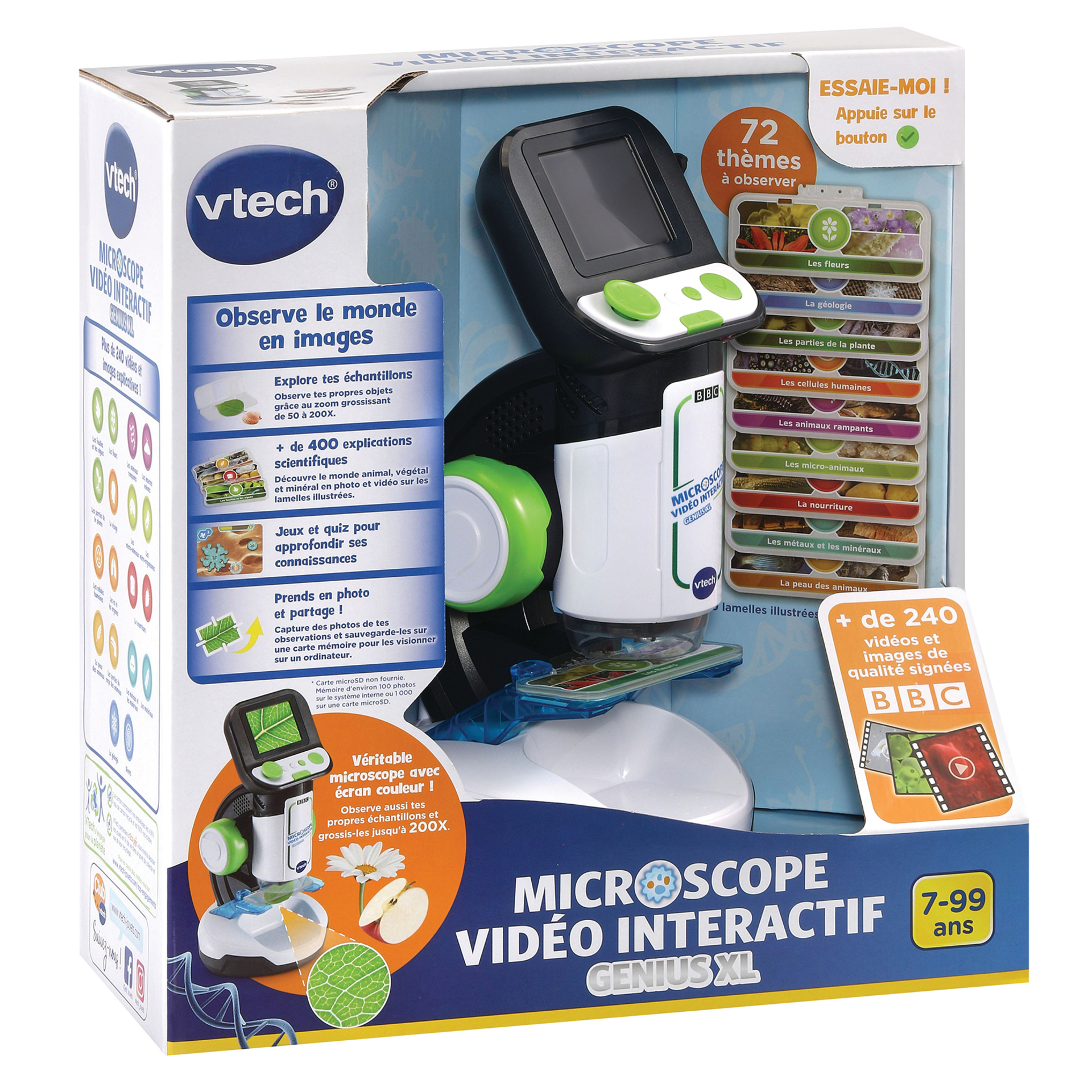 Microscope vidéo interactif Genius XL - 7 - 99 ans Microscope numérique avec vidéos de la BBC pour explorer le monde ! • Un vrai microscope avec écran couleur de 2.4’’ et zoom d’agrandissement x200 pour observer l’environnement qui nous entoure dans les moindres détails ! • 3 modes d’observation : - Lamelles illustrées : pour découvrir des vidéos et des images sur une thématique, jouer à des jeux et répondre à des quiz. - Lamelles vierges : pour observer ses propres échantillons - Plateforme pour objets en 3D : pour observer tous les petits éléments 3D de son environnement. • 9 lames illustrées recto-verso pour découvrir 18 catégories et plus de 70 vidéos de la BBC, 144 images et 432 informations. • 2 lames pour observer ses propres échantillons (une de 1mm d’épaisseur et une de 6mm d’épaisseur). • 1 Joystick et 5 boutons pour naviguer à travers les différents jeux et fonctionnalités. • 4 jeux thématiques sur les cellules, les virus et les champignons. • Port de carte MicroSD (non incluse) pour sauvegarder les photos prises à l’aide du microscope et les imprimer. • Réglage du volume sonore et arrêt automatique. Boîte Try-me. Fonctionne avec 4 piles LR6 incluses.