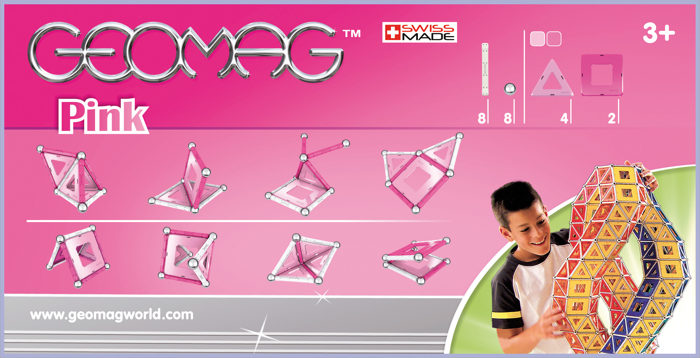 Coffret de Geomag Pink - 22 pcs : Avec ce coffret, tu pourras réaliser des constructions avec des couleurs pastel. Inclut 8 barres Geomag, 8 Sphères et des accessoires.
