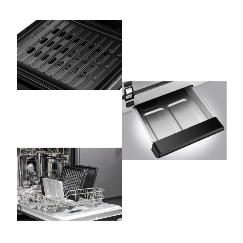 Technologie sans fumée - Systeme de ventilation intégré qui permet de cuisiner avec jusqu'a 87% moins de fumée* - Température unique - Revetement antiadhésif - 3x plus rapide qu'un four électrique conventionnel - Plaques de gril et plateau d'égouttement amovibles, allant au lave-vaisselle