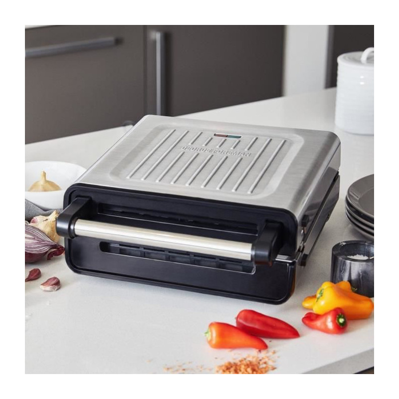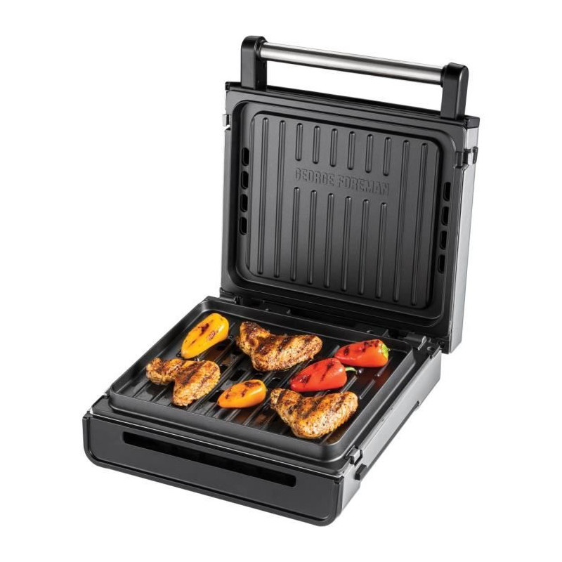George Foreman 28000-56 - Grill Sans Fumée - 1500W - Boîtier en Acier Inoxydable - Revetement Antiadhésif