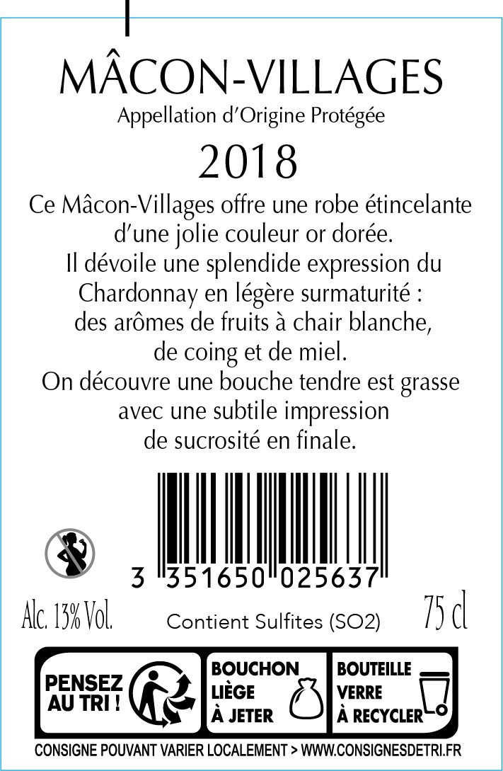 Libellé Georges Duboeuf, 2018 - Mâcon Villages AOP - Blanc Sec - 75 cl