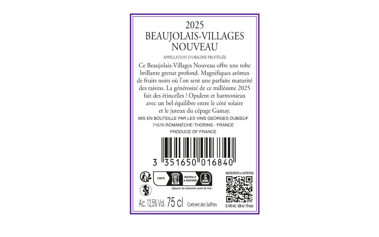 Georges Duboeuf, 2025 - Beaujolais villages Nouveau AOP - Rouge - 75 cl