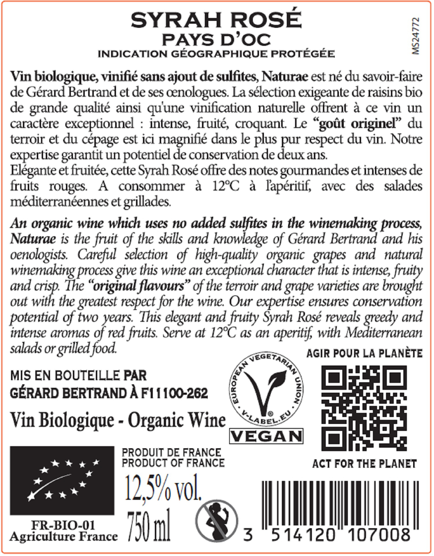 | Libellé | Gérard Bertrand Naturae, 2023 - Pays d'Oc IGP - Rosé - 75 cl |