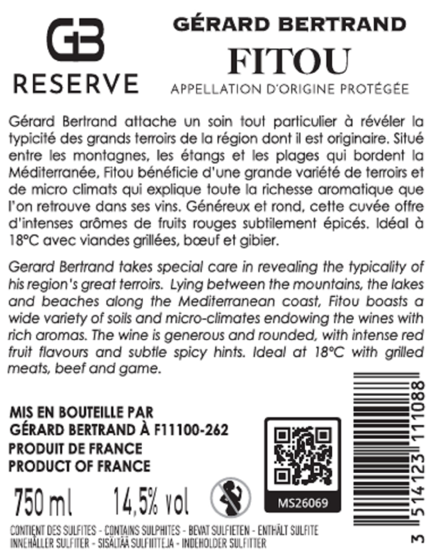 | Libellé | Gérard Bertrand Réserve, 2024 - Fitou AOP - Rouge - 75 cl |
