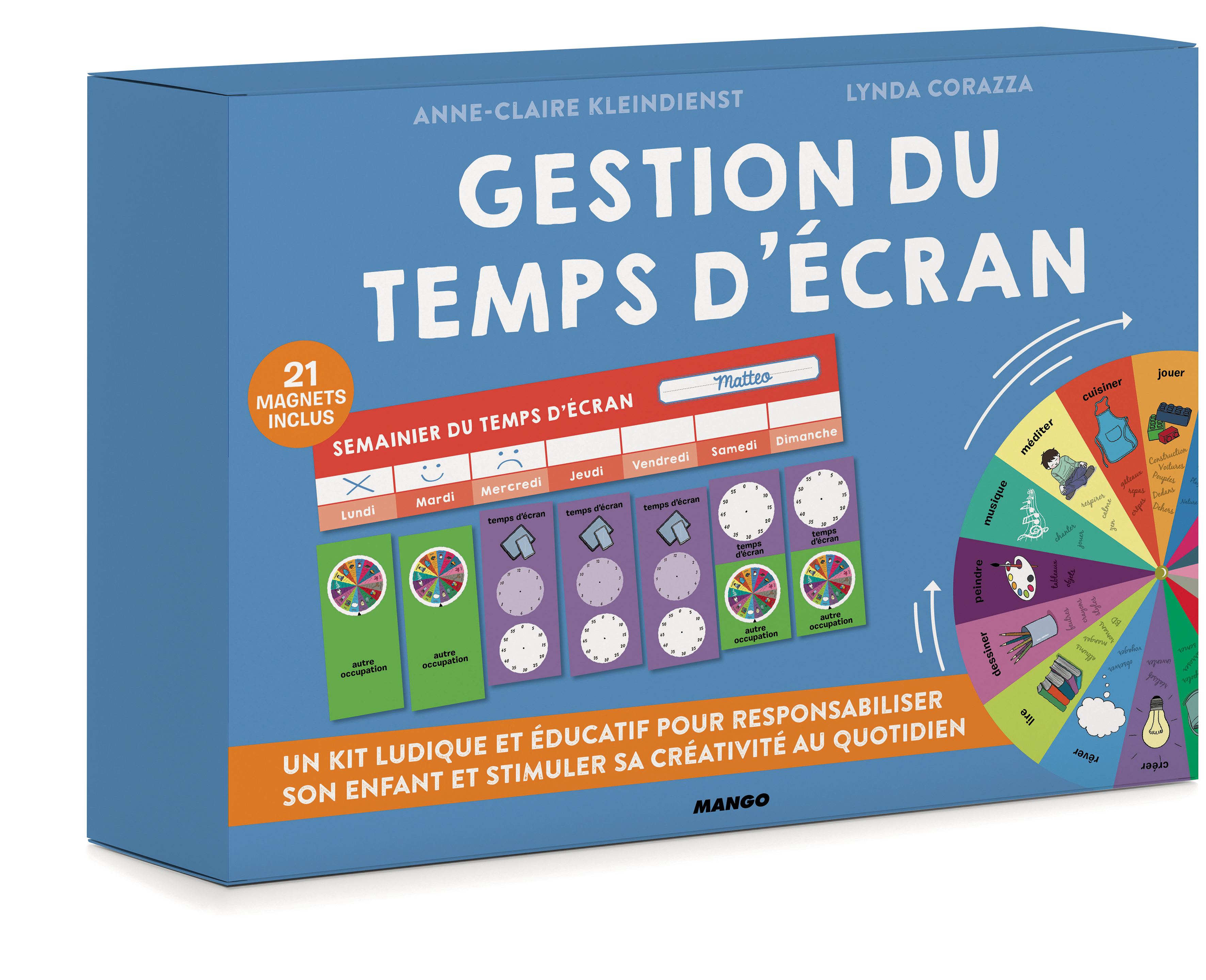 > 1 livret explicatif, 21 magnets et 1 semainier pour définir ensemble les temps d’écran et leur durée sur l’ensemble de la semaine.