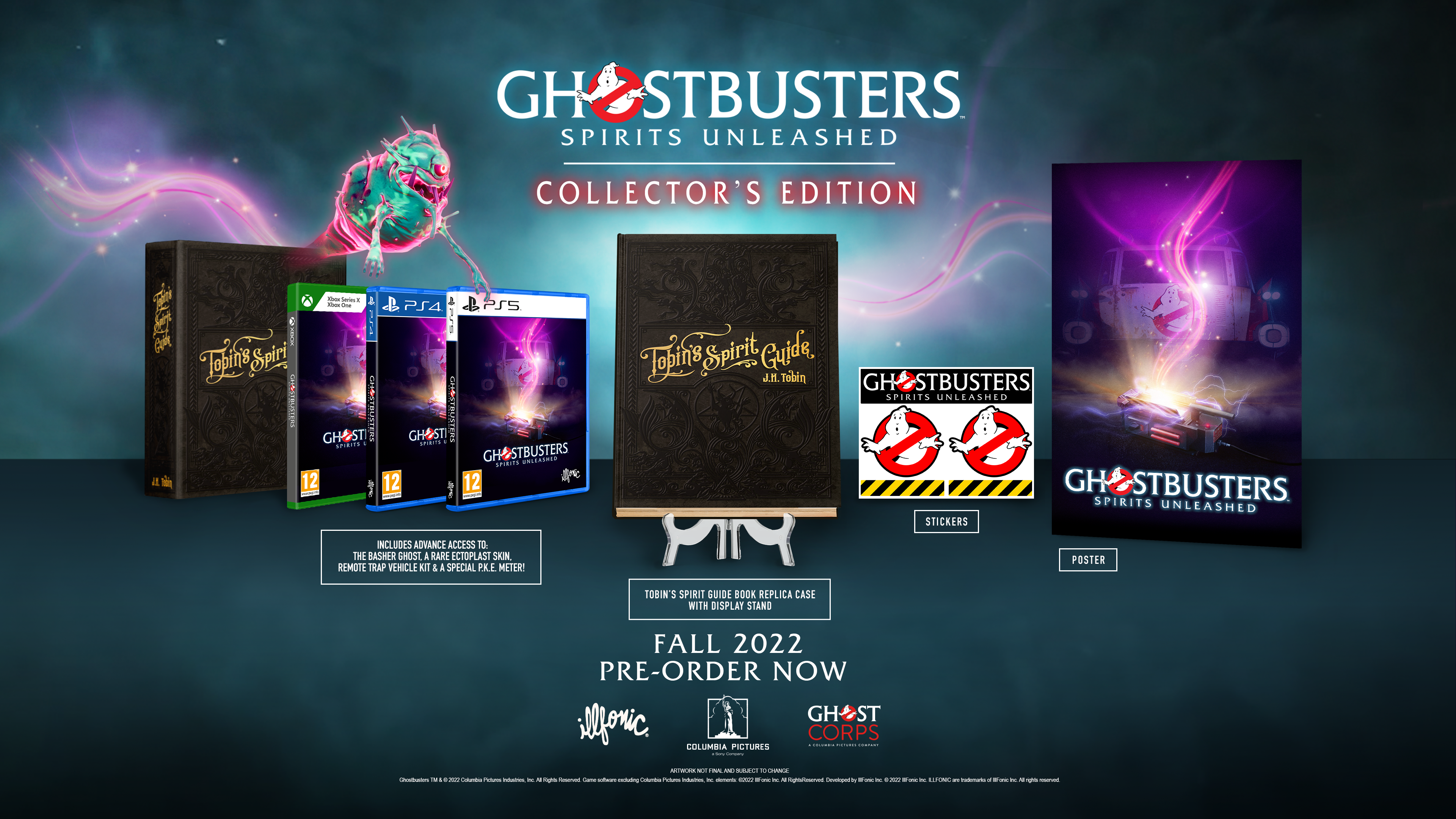 Ghostbusters : Spirts Unleashed - Collector's Edition sera emballé dans une réplique du Tobin's Spirit Guide ! Il comprendra également une affiche exclusive, des autocollants et un présentoir. Cette édition du jeu recevra également un accès anticipé au Basher Ghost, un rare Ectoplast Skin, Ghostbusters RC Ghost Trap et un PKE Meter spécial. Incarnez les Ghostbusters ou les Fantômes ! Quatre packs de protons brandissant Ghostbusters tentent d'attraper un Fantôme hantant des lieux uniques dans des batailles multijoueurs asymétriques (en ligne ou hors ligne). Au fur et à mesure que les joueurs progressent, ils débloqueront des cosmétiques et des améliorations pour Ghostbusters et Fantômes afin de faire évoluer leurs expériences de jeu. Le look and feel offrira aux fans une expérience immersive dans l'univers, leur permettant de jouer leurs fantasmes Ghostbusting. Qu'il s'agisse de chasse ou de hantise, le jeu est facile à apprendre et amusant à maîtriser !