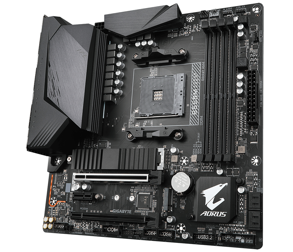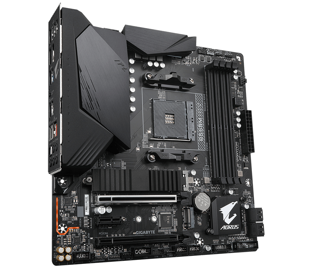 Gigabyte B550M AORUS PRO-P (rev. 1.0). Socket de processeur (réceptable de processeur): Emplacement AM4, Processeurs compatibles: AMD Ryzen™ 3 de 3e génération, AMD Ryzen 5 de 3e génération, Prise en charge des douilles du processeur: Emplacement AM4. Types de mémoire pris en charge: DDR4-SDRAM, Mémoire interne maximale: 128 Go, Type de support (slot): DIMM. Interfaces de lecteur de stockage prises en charge: M.2, SATA III, Types de lecteurs de stockage pris en charge: HDD & SSD, Niveaux RAID: 0, 1, 10. Taille de la mémoire vidéo: 16000 Mo, Résolution maximale: 5120 x 2880 pixels. Connecteur USB: USB Type-A, USB Type-C