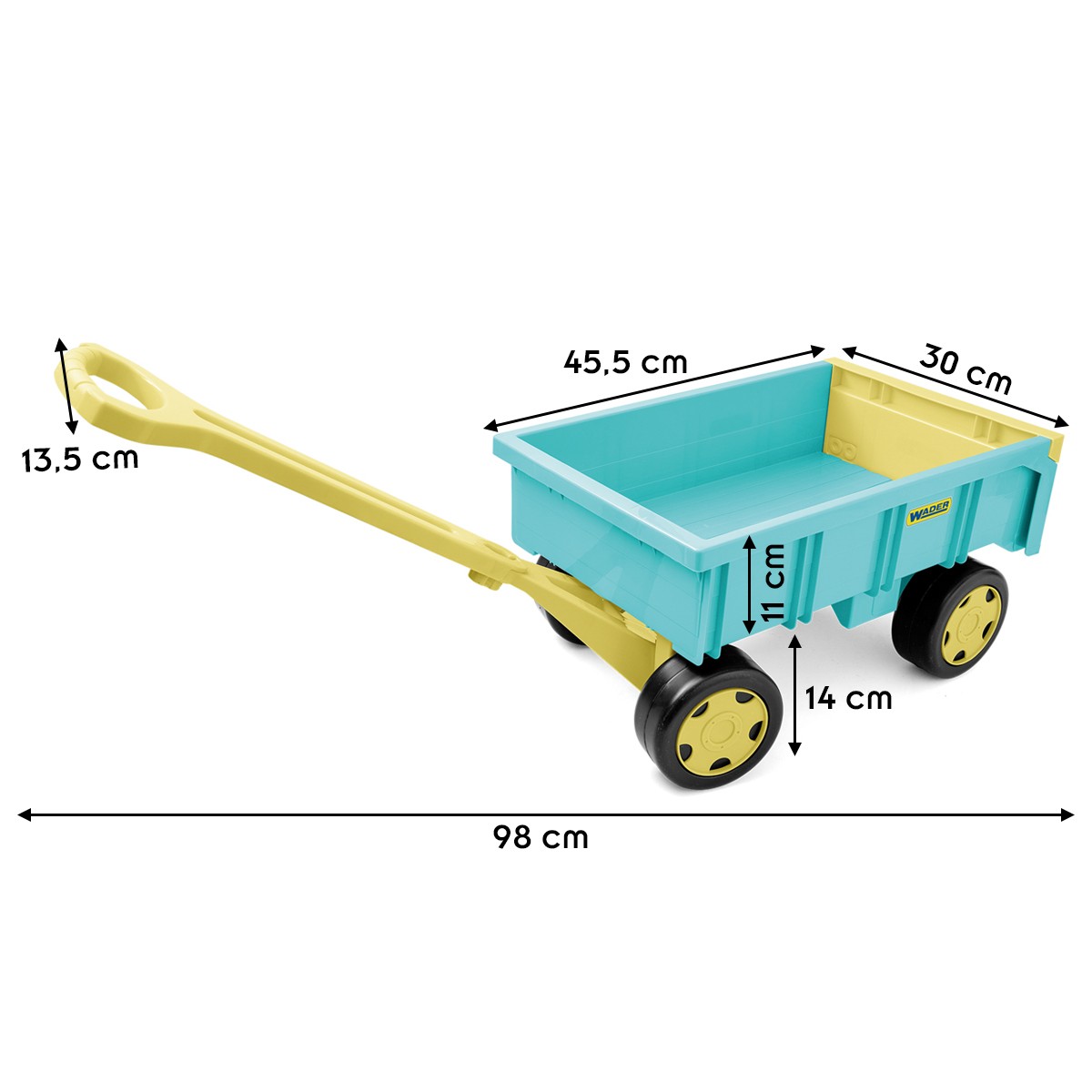 Ce chariot à tirer est suffisamment spacieux pour que vos enfants puissent y embarquer tous leurs jouets préférés. Avec sa grande poignée, il devient le véhicule idéal pour partir en balades.